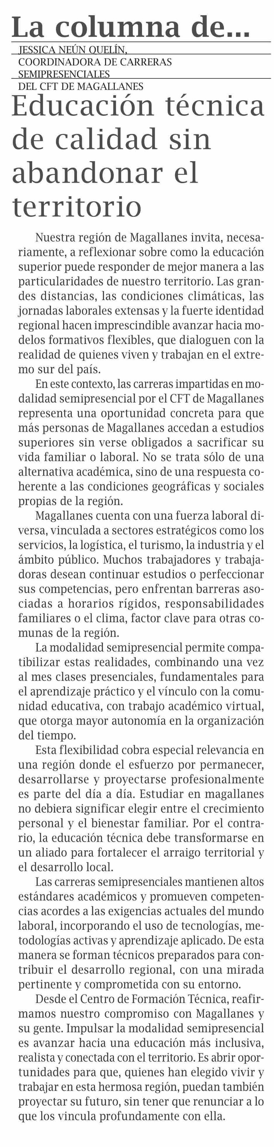 Columnas de Opinión: Educación técnica de calidad sin abandonar el territorio