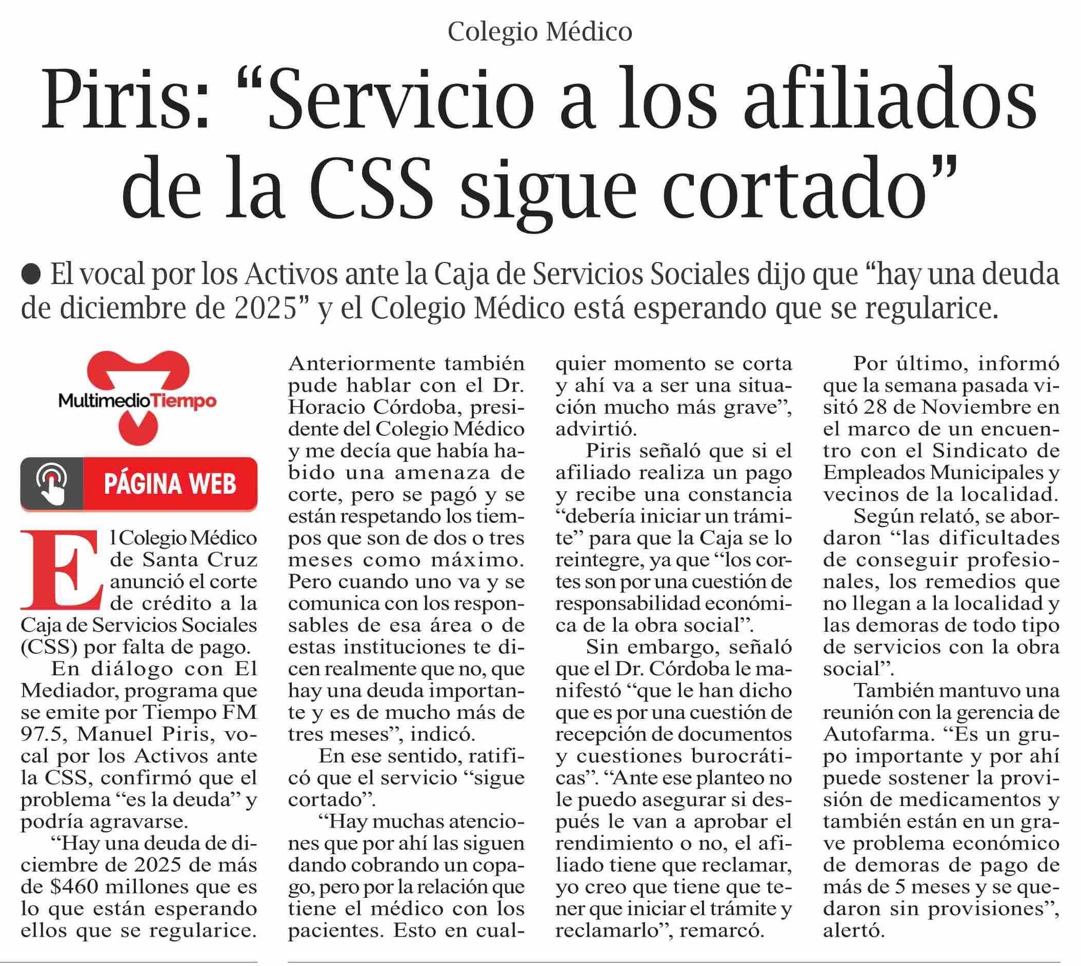 Piris: “Servicio a los afiliados de la CSS sigue cortado”