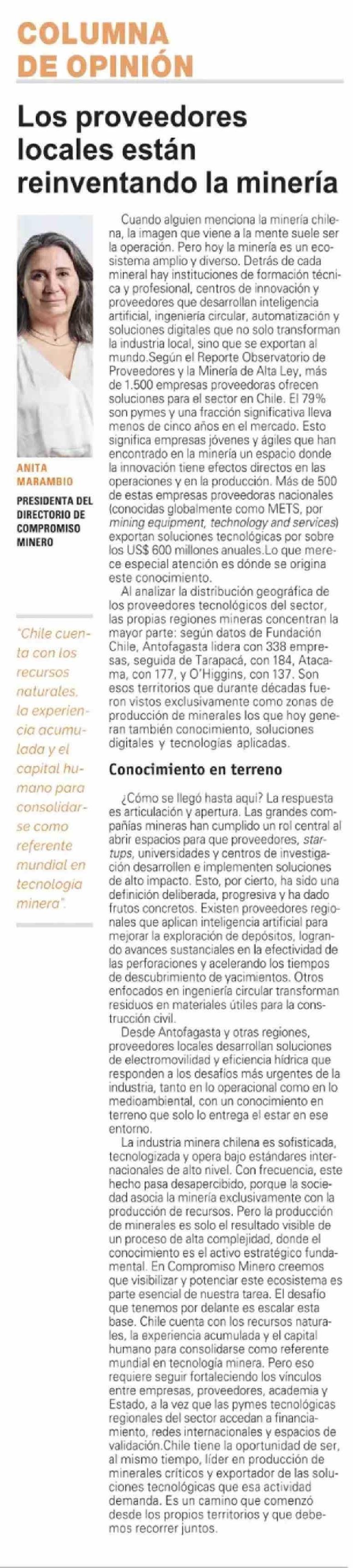 Columnas de Opinión: Los proveedores locales están reinventando la minería