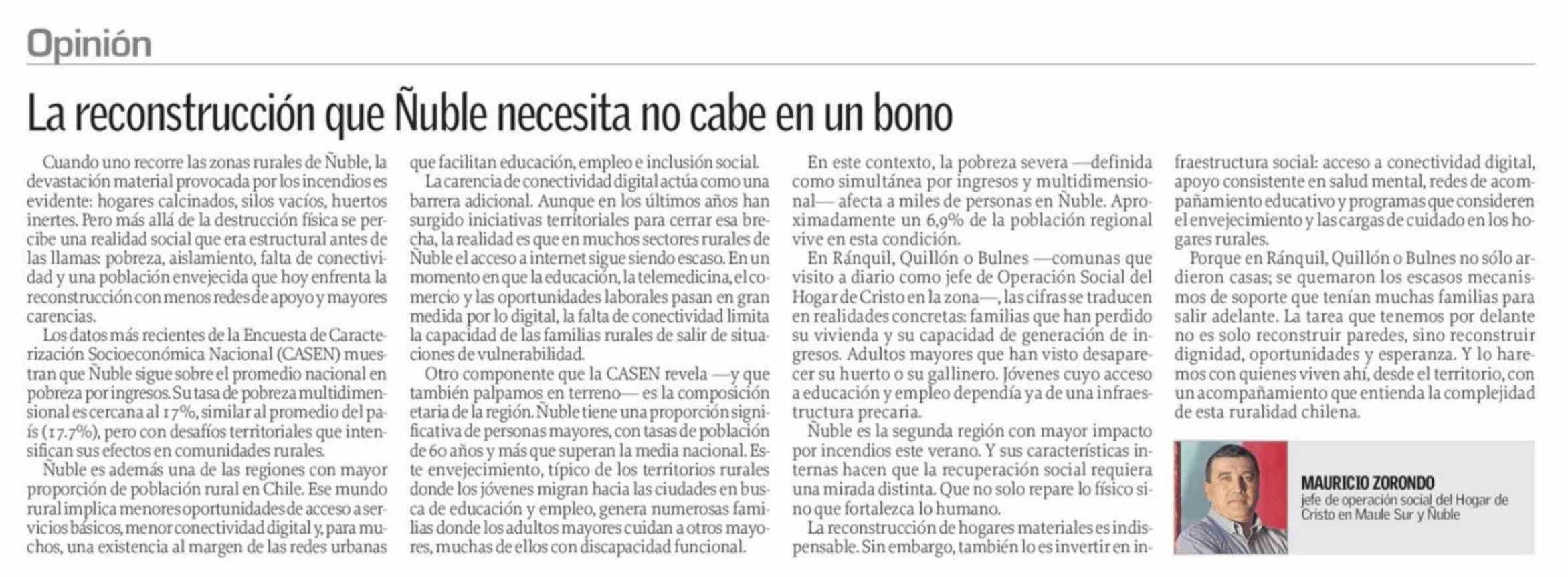 Columnas de Opinión: La reconstrucción que Ñuble necesita no cabe en un bono