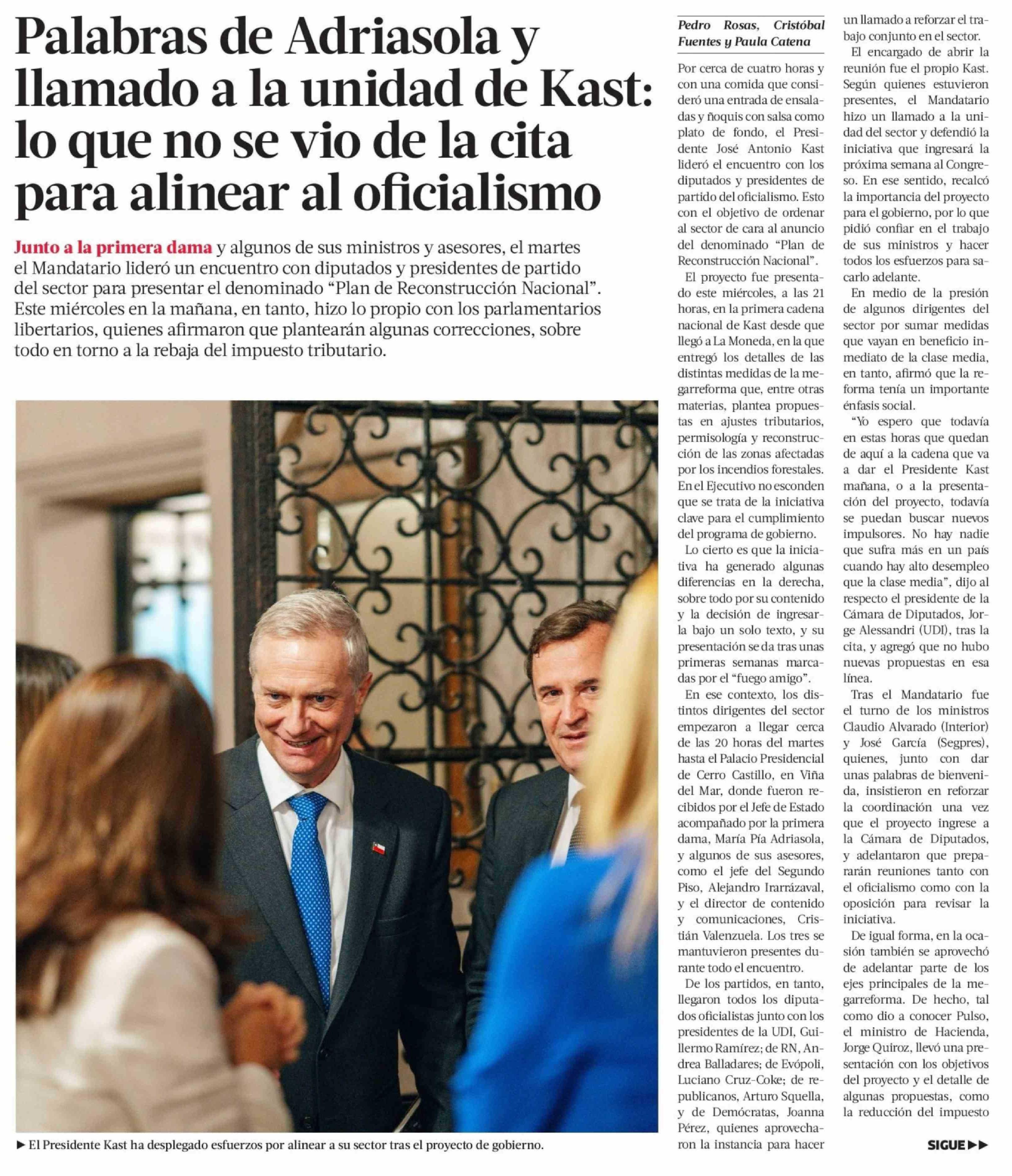 Palabras de Adriasola y llamado a la unidad de Kast: lo que no se vio de la cita para alinear al oficialismo