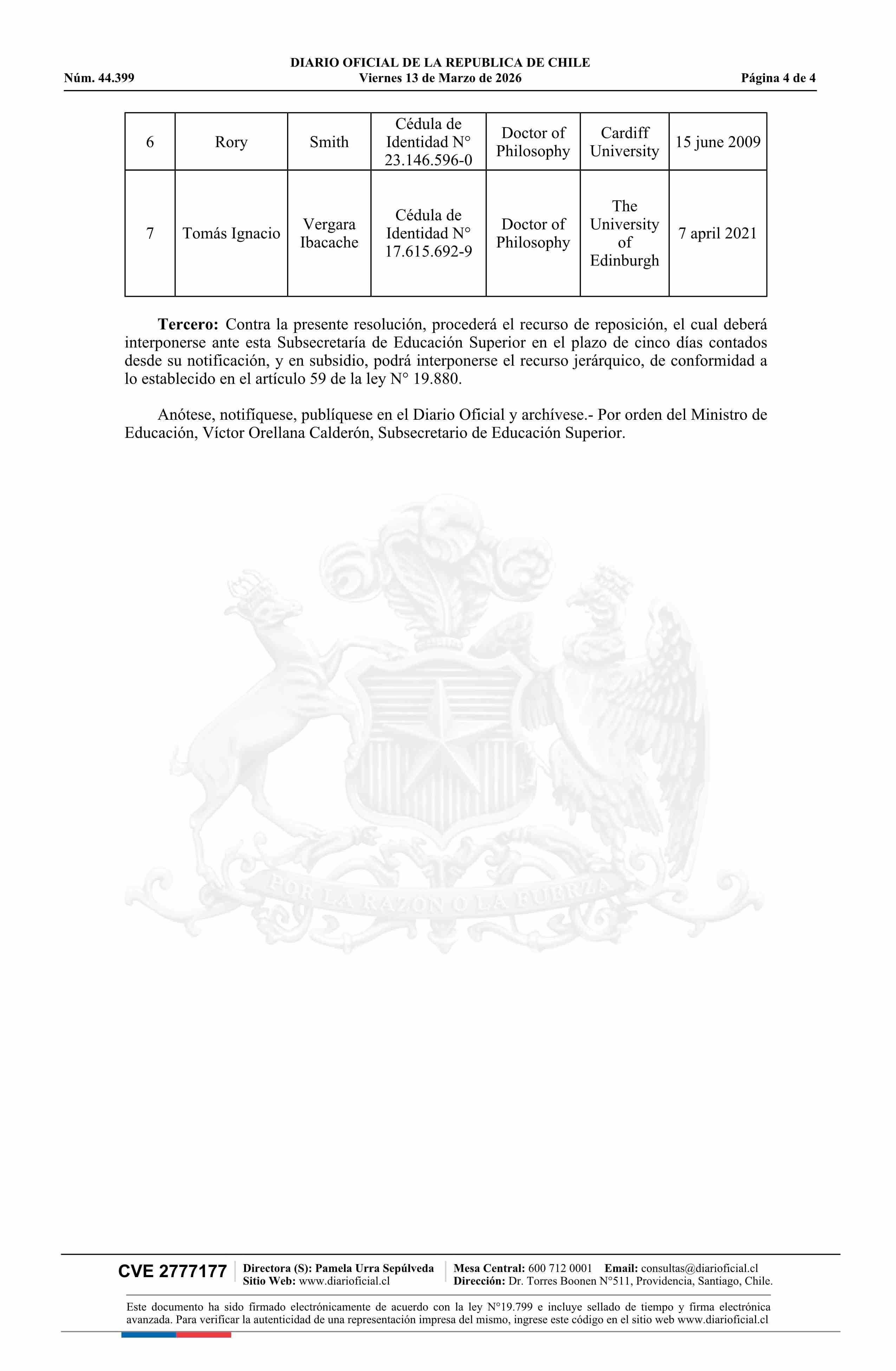 | Título: | Resolución exenta número 873, de 2026.- Reconoce los títulos expedidos por universidades del Reino Unido que indica, en el marco del Acuerdo de Reconocimiento Mutuo de Títulos y Grados entre la República de Chile y el Reino Unido de Gran Bretaña e Irlanda del Norte |