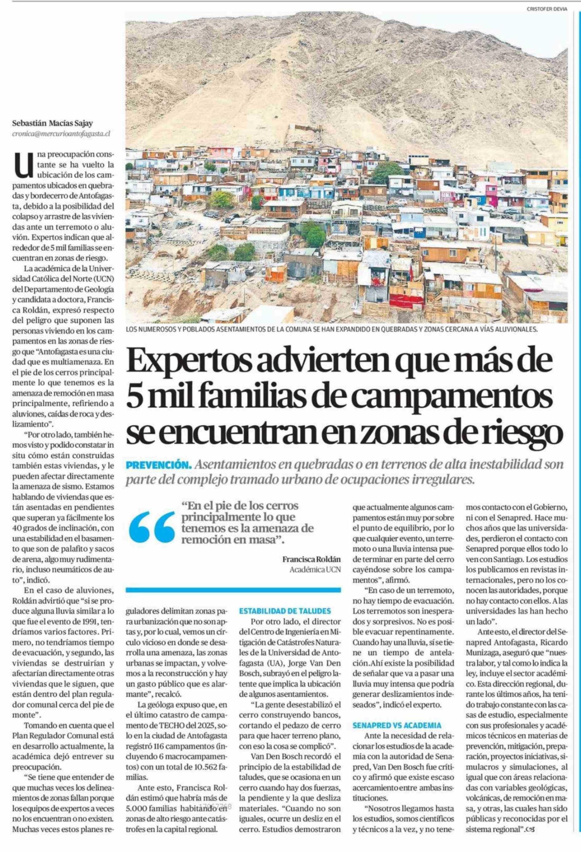 Título: Expertos advierten que más de 5 mil familias de campamentos se encuentran en zonas de riesgo