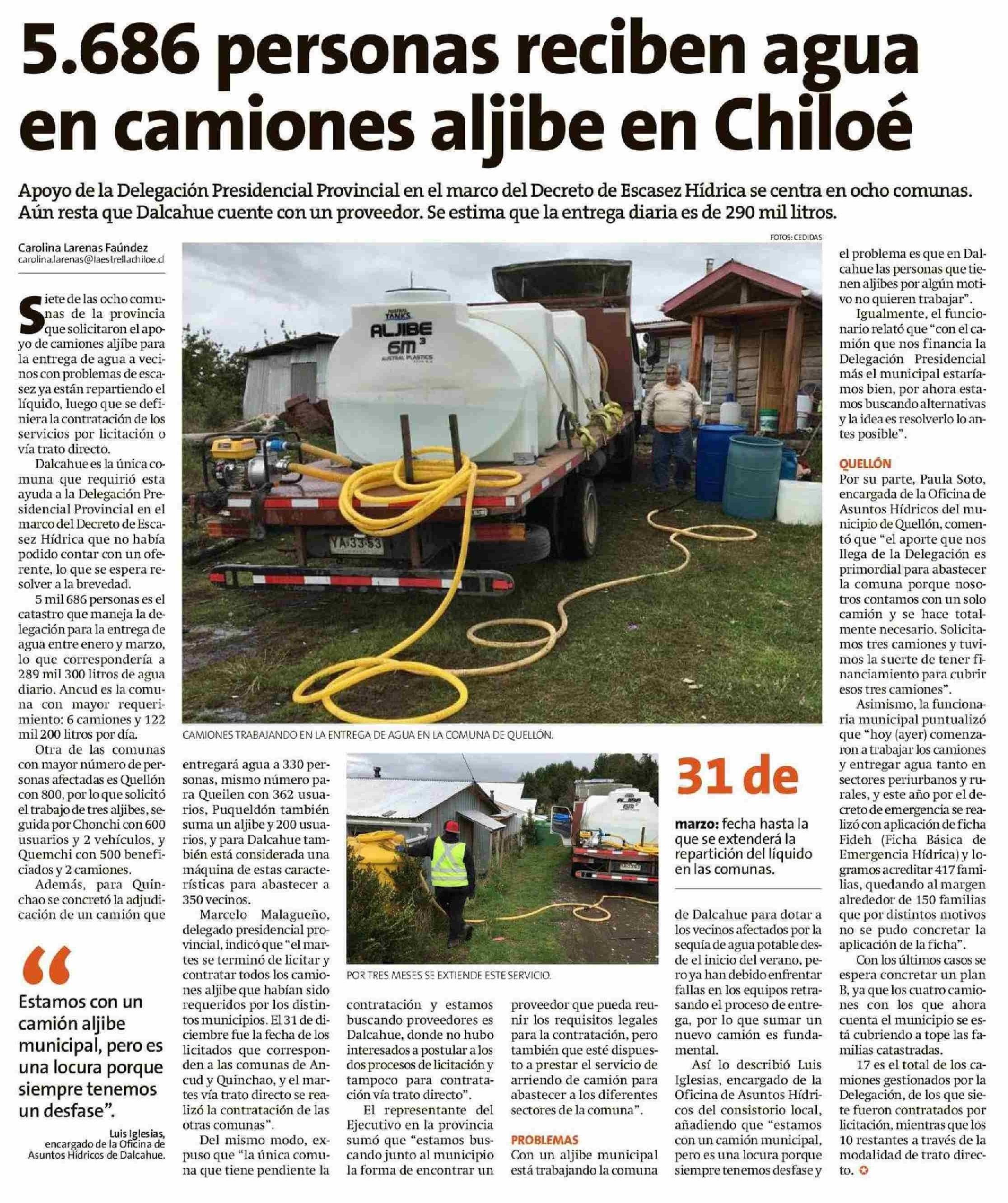 5.686 Personas reciben agua en camiones aljibe en Chiloé