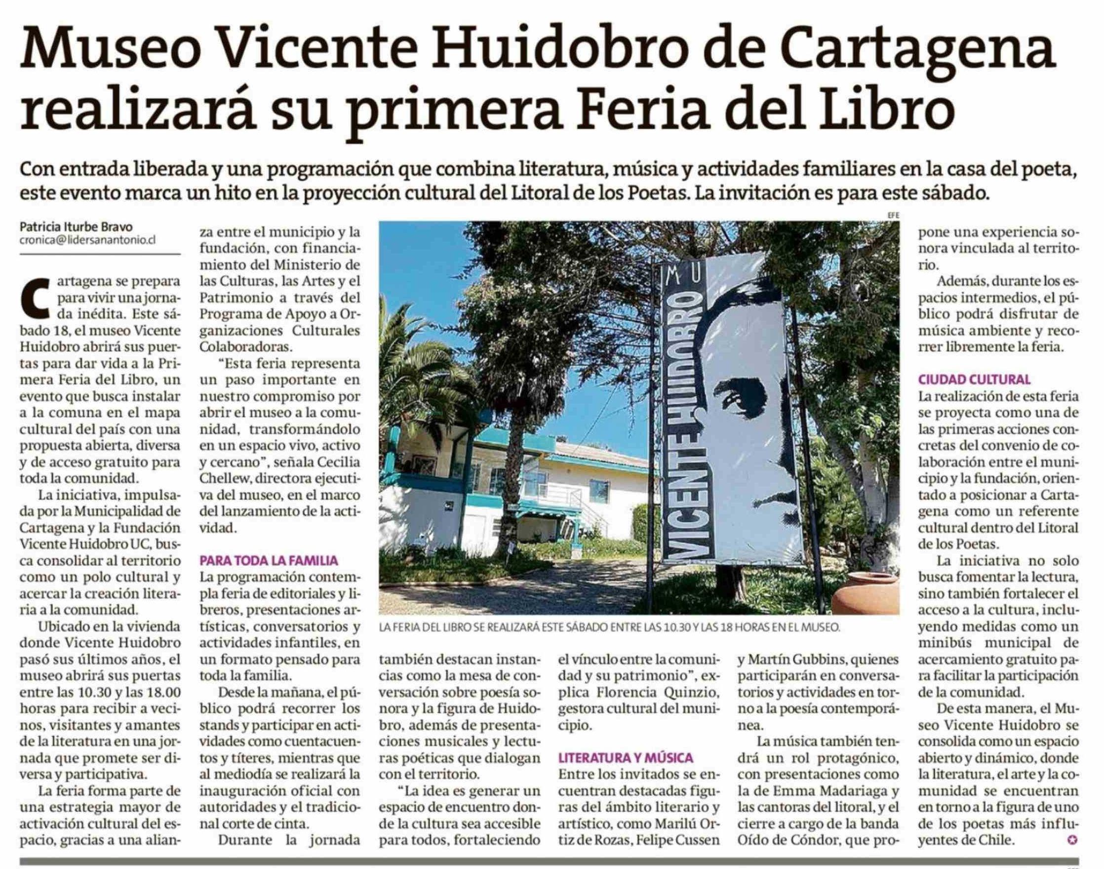 Título: Museo Vicente Huidobro de Cartagena realizará su primera Feria del Libro