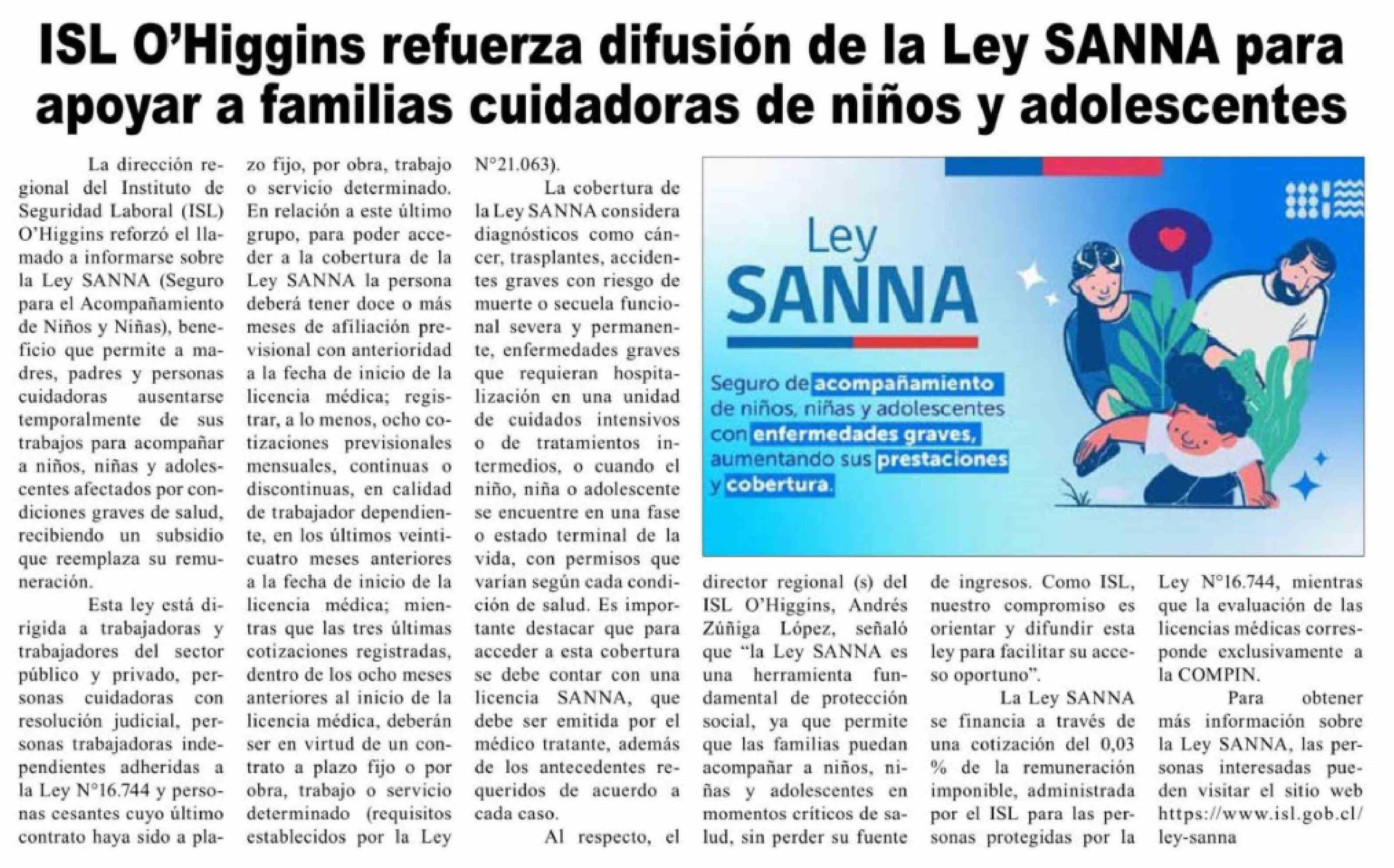 ISL O'Higgins refuerza difusión de la Ley SANNA para apoyar a familias cuidadoras de niños y adolescentes