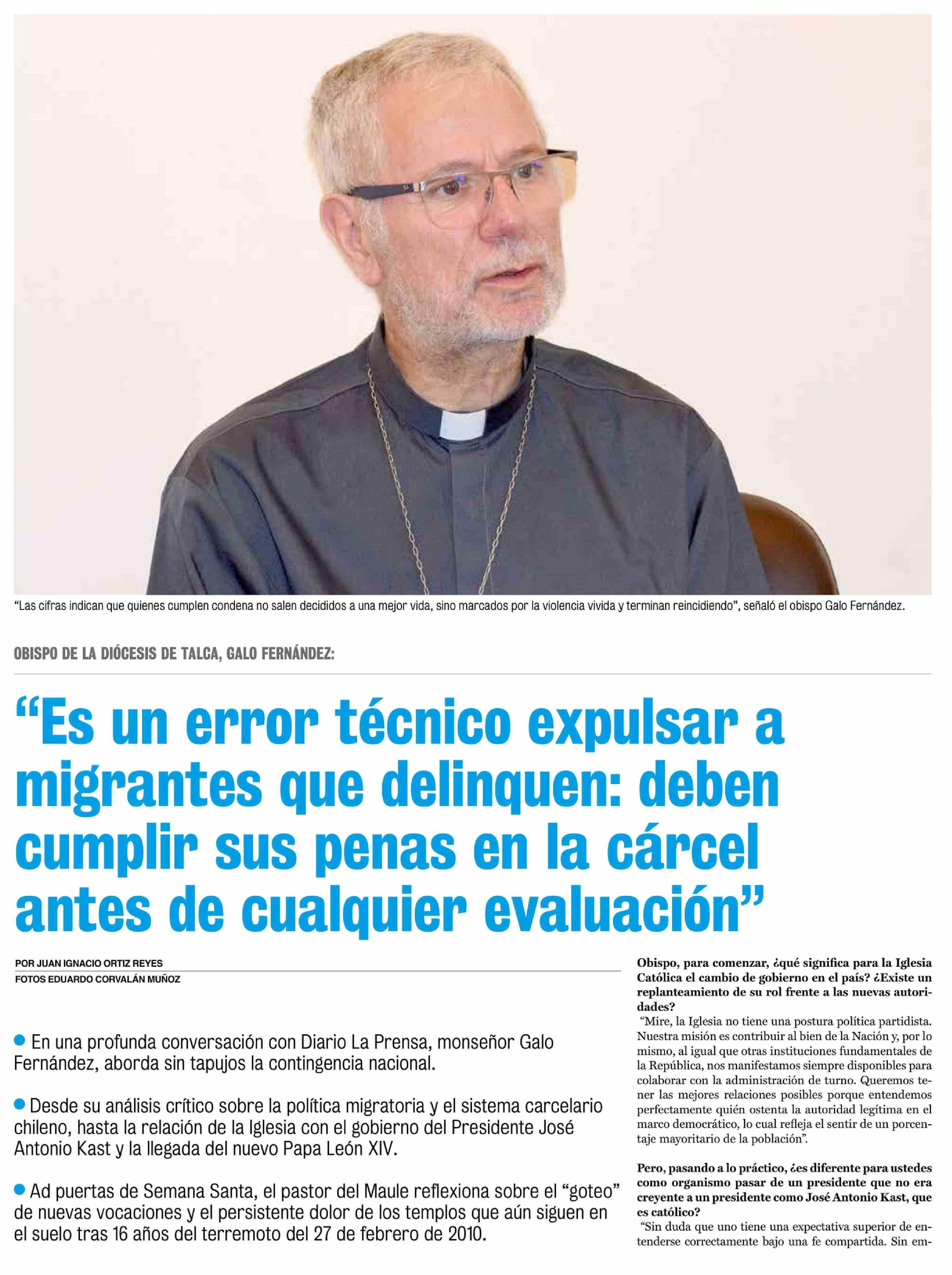· En una profunda conversación con Diario La Prensa, monseñor Galo Fernández, aborda sin tapujos la contingencia nacional.