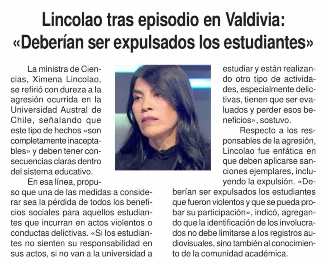 Lincolao tras episodio en Valdivia: «Deberían ser expulsados los estudiantes»