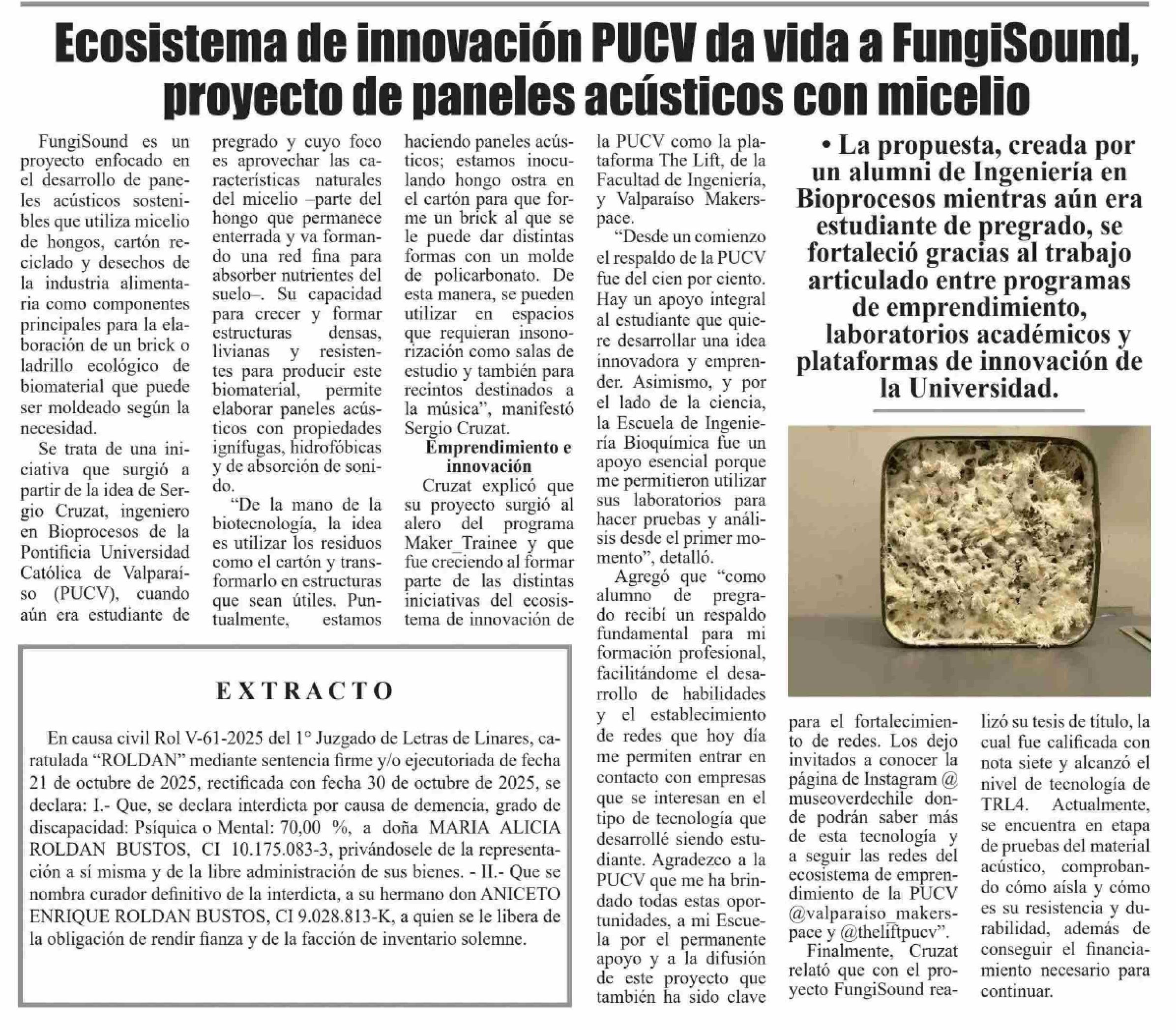 Ecosistema de innovación PUCV da vida a FungiSound, proyecto de paneles acústicos con micelio