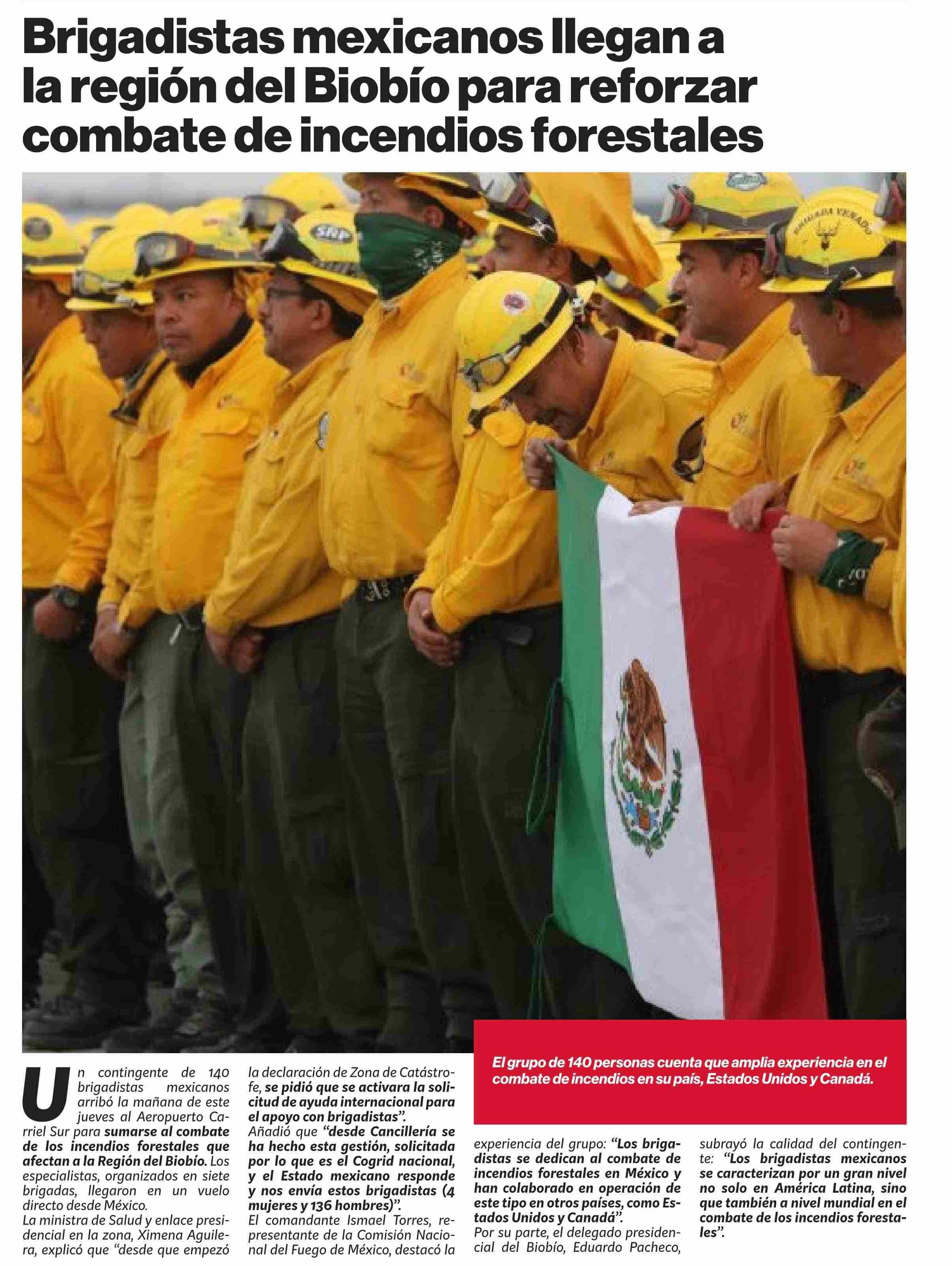 Brigadistas mexicanos llegan a la región del Biobío para reforzar combate de incendios forestales