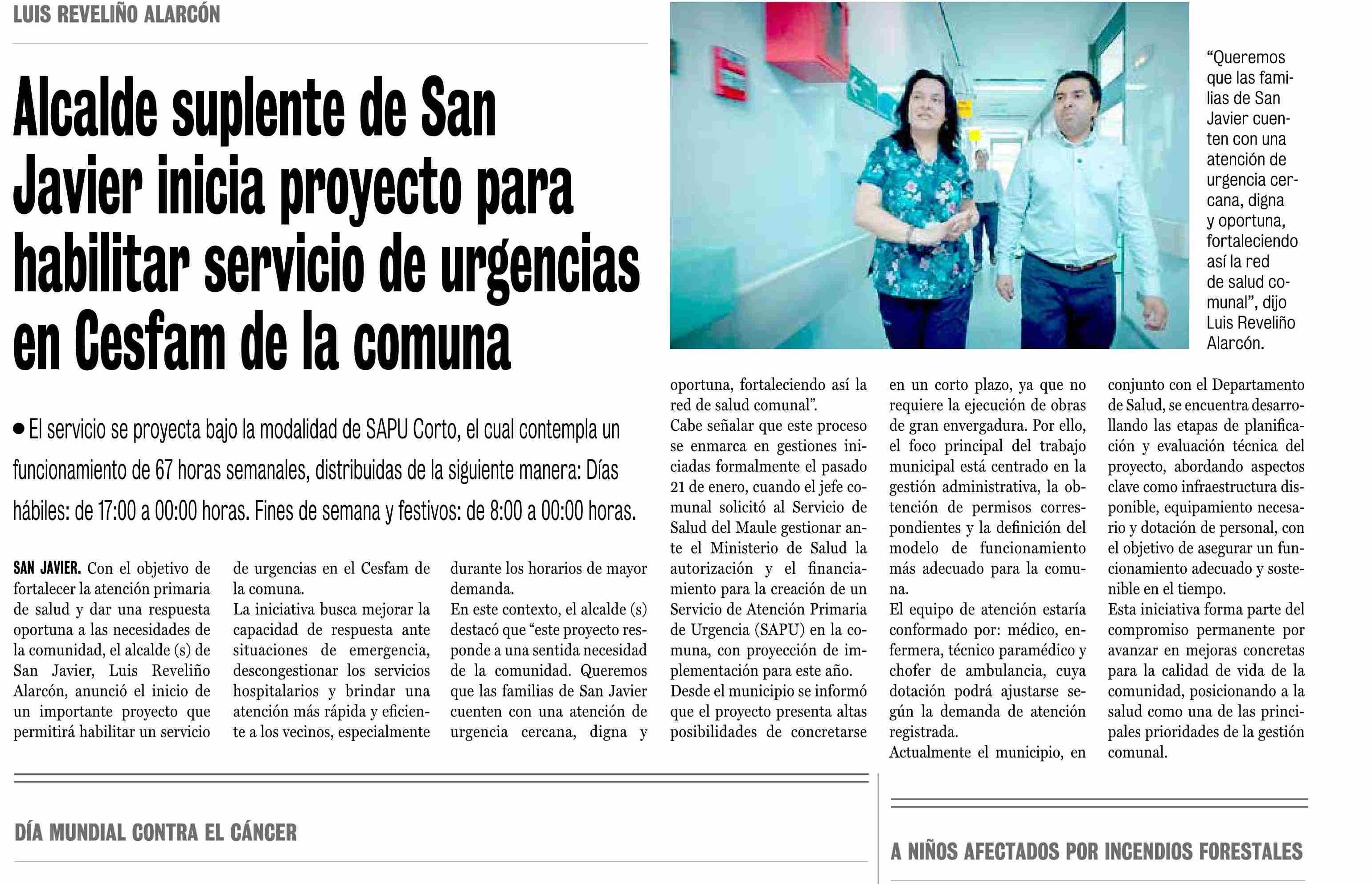 Alcalde suplente de San Javier inicia proyecto para habilitar servicio de urgencias en Cesfam de la comuna