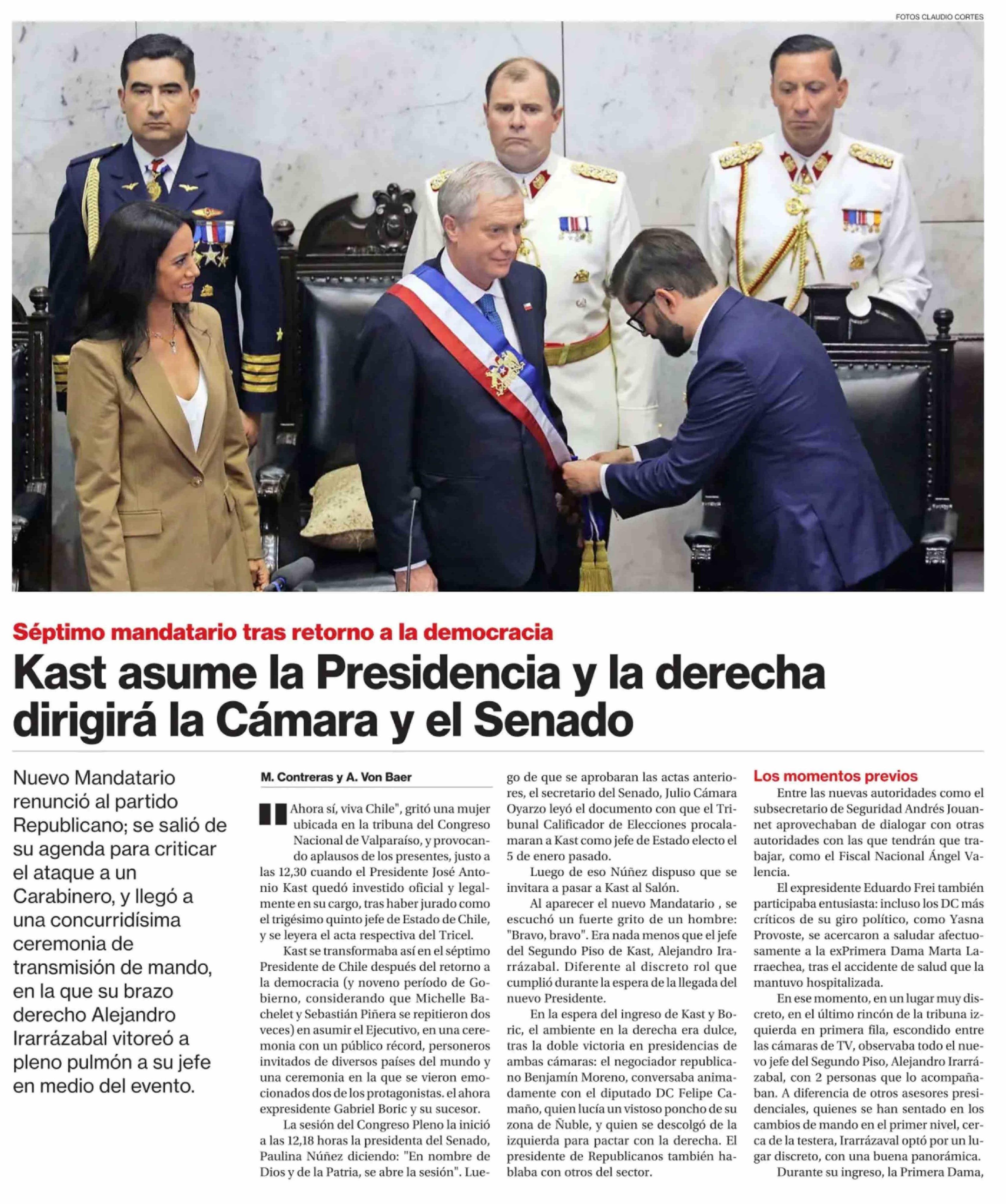Kast asume la Presidencia y la derecha dirigirá la Cámara y el Senado