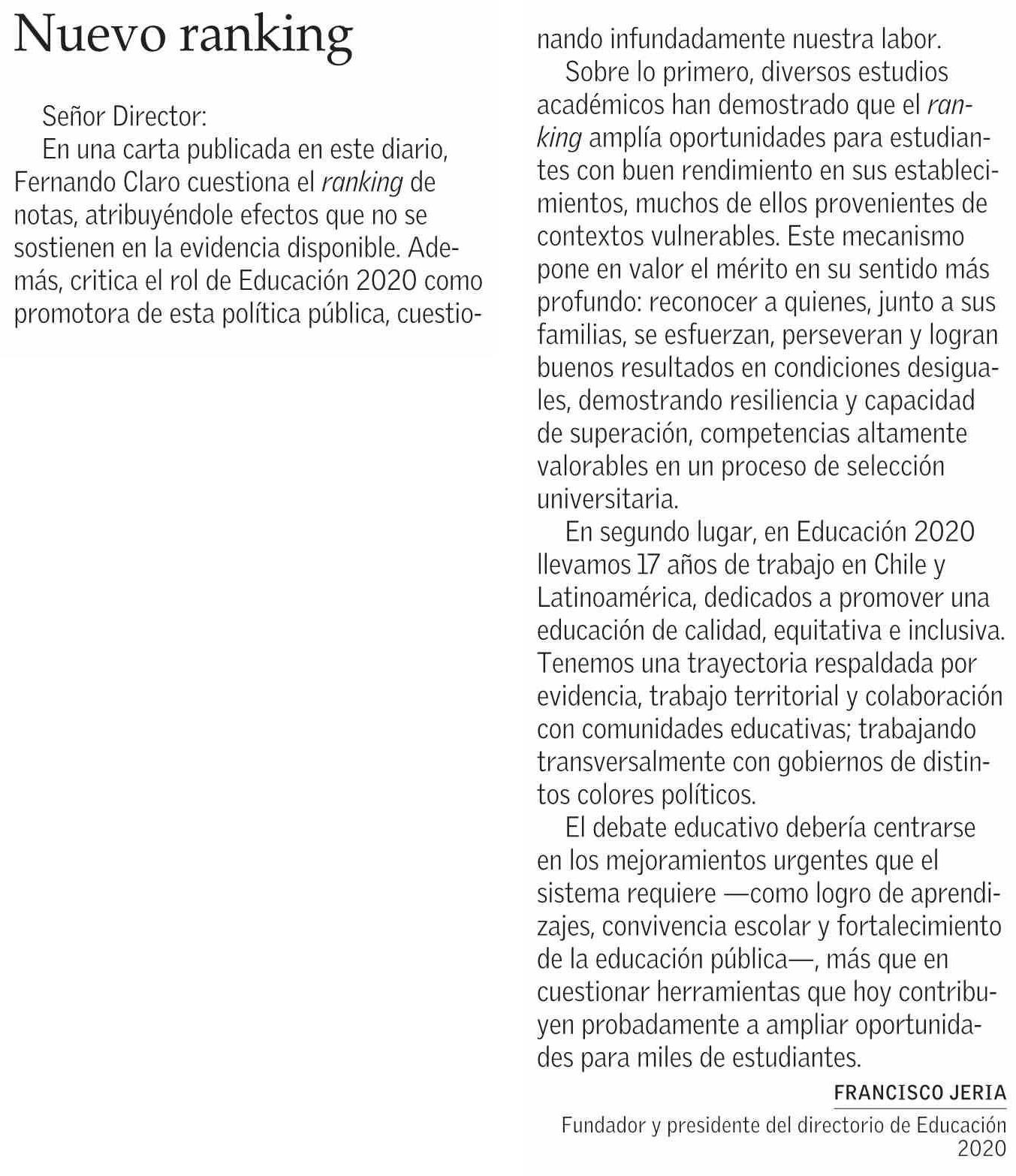 Cartas: Nuevo ranking