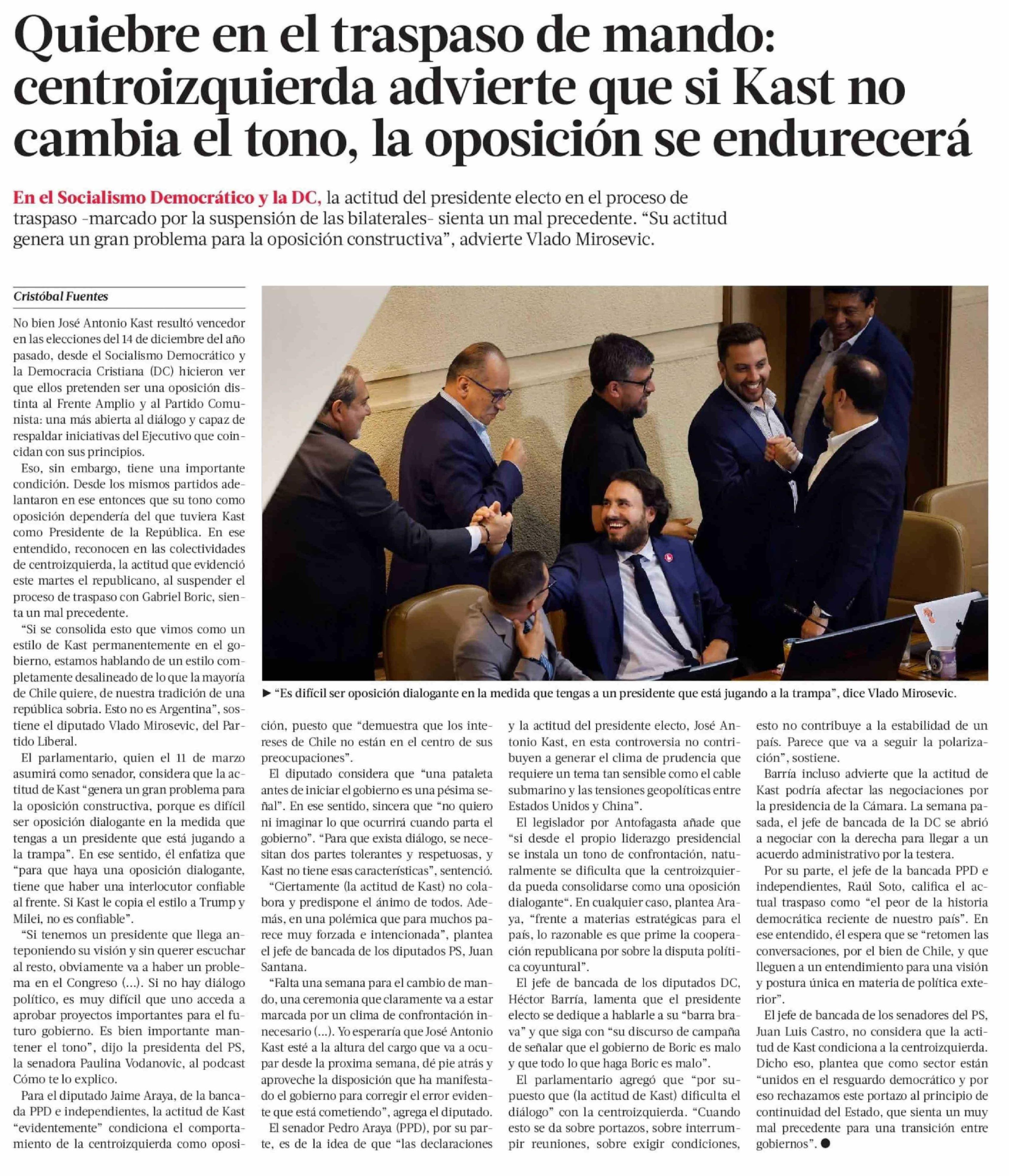 Quiebre en el traspaso de mando: centroizquierda advierte que si Kast no cambia el tono, la oposición se endurecerá