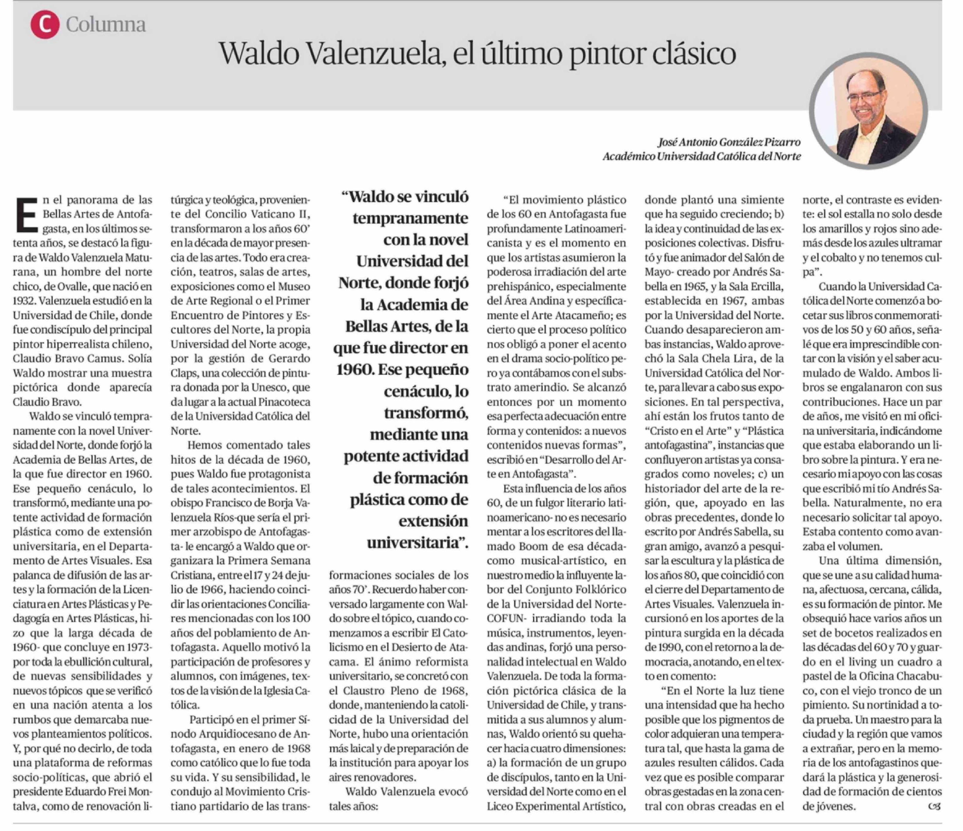 Columnas de Opinión: Waldo Valenzuela, el último pintor clásico