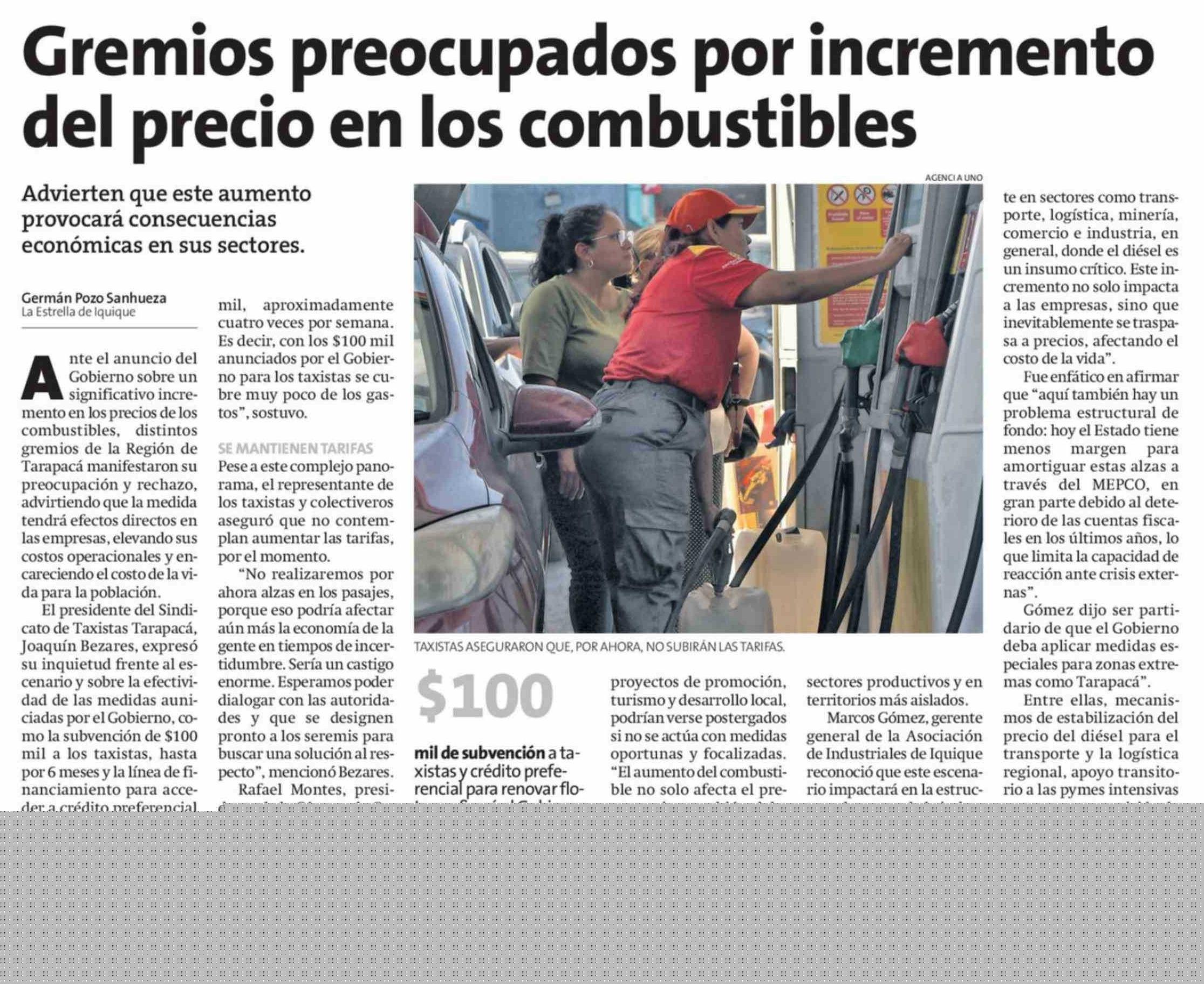 Gremios preocupados por incremento del precio en los combustibles