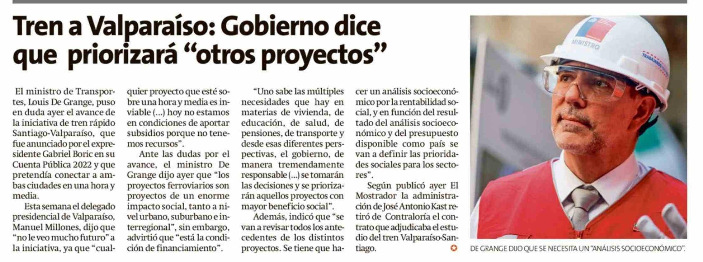 Tren a Valparaíso: Gobierno dice que priorizará "otros proyectos"