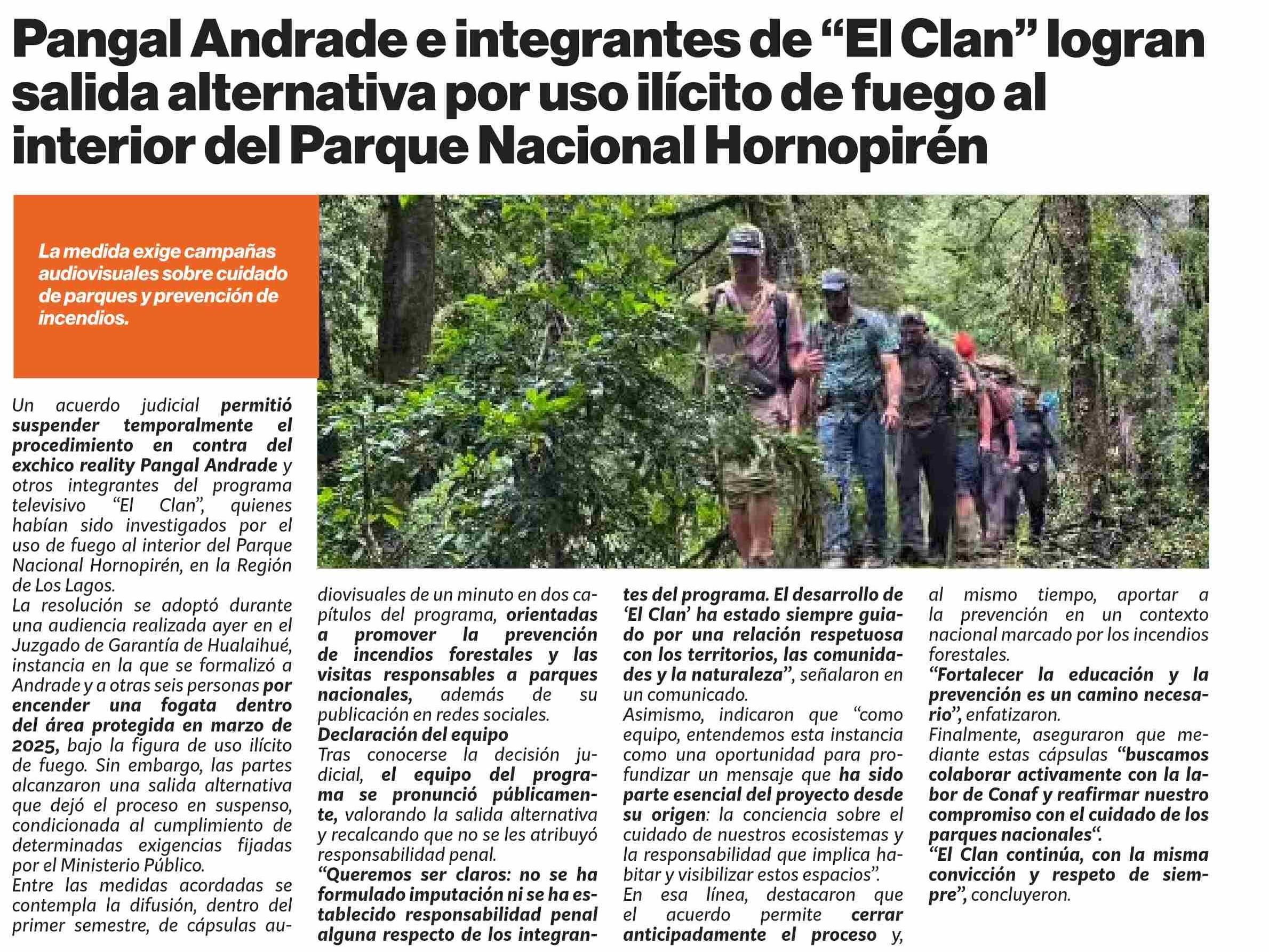 Pangal Andrade e integrantes de “El Clan” logran salida alternativa por usoilícito de fuego al interior del Parque Nacional Hornopirén