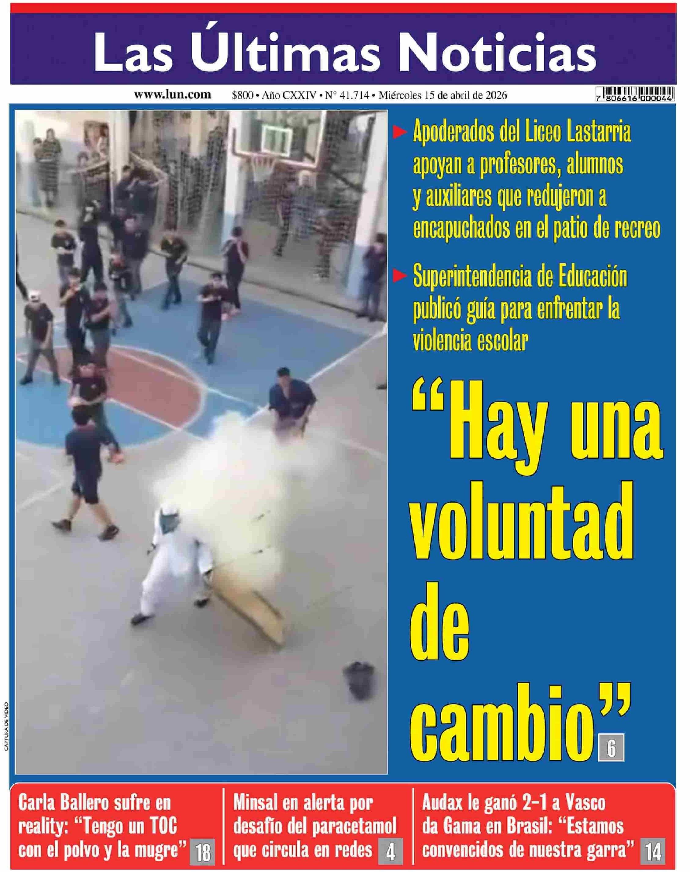 PORTADA LAS ÚLTIMAS NOTICIAS SEGUNDA EDICIÓN - CHILE