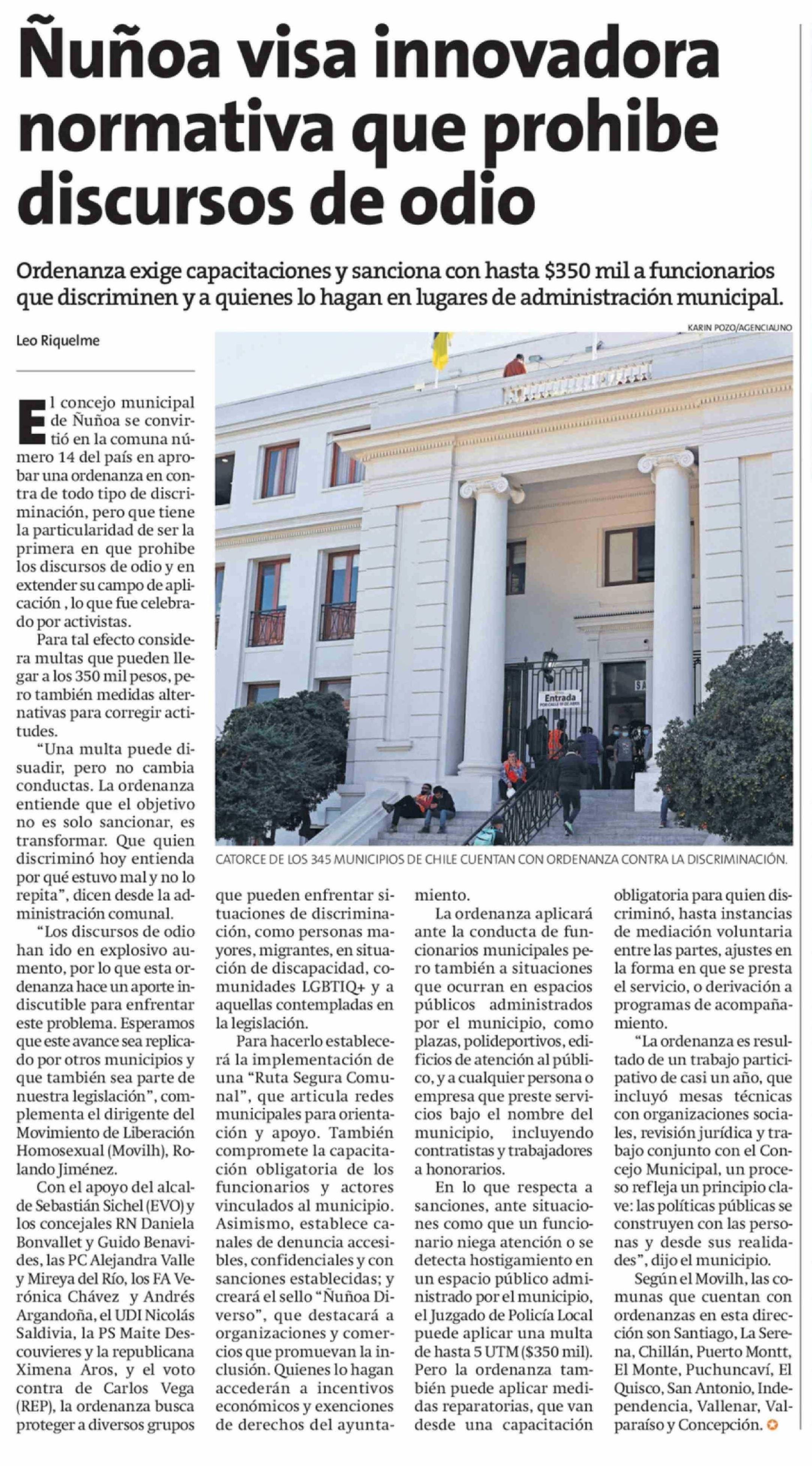 Ñuñoa visa innovadora normativa que prohibe discursos de odio