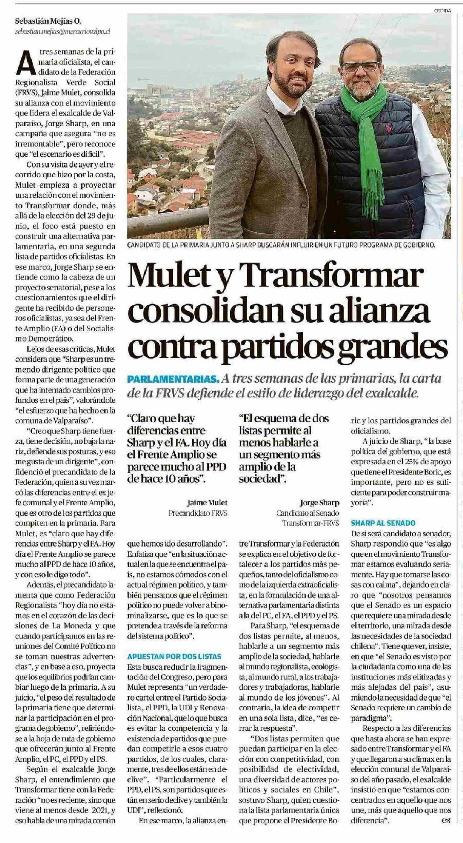Mulet y Transformar consolidan su alianza contra partidos grandes