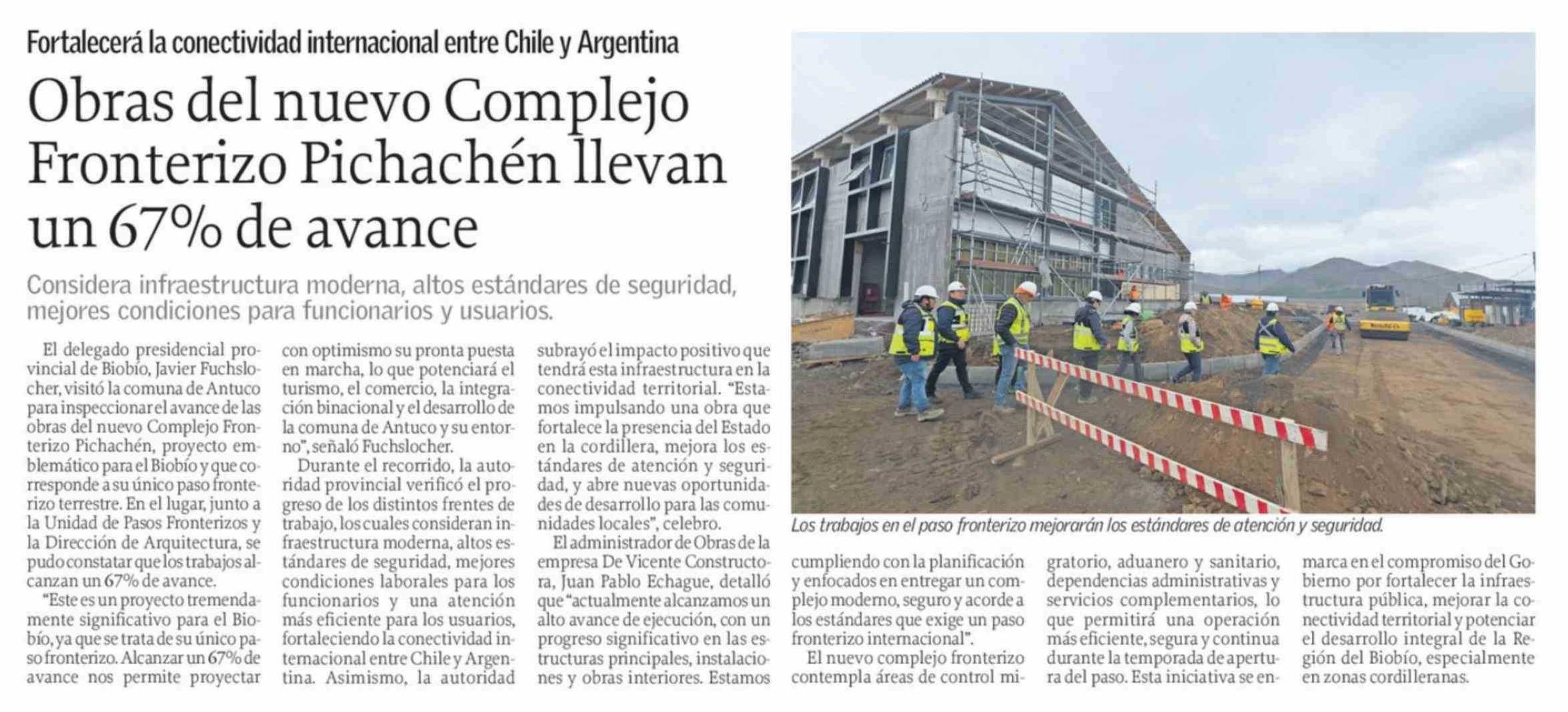 Obras del nuevo Complejo Fronterizo Pichachén llevan un 67% de avance