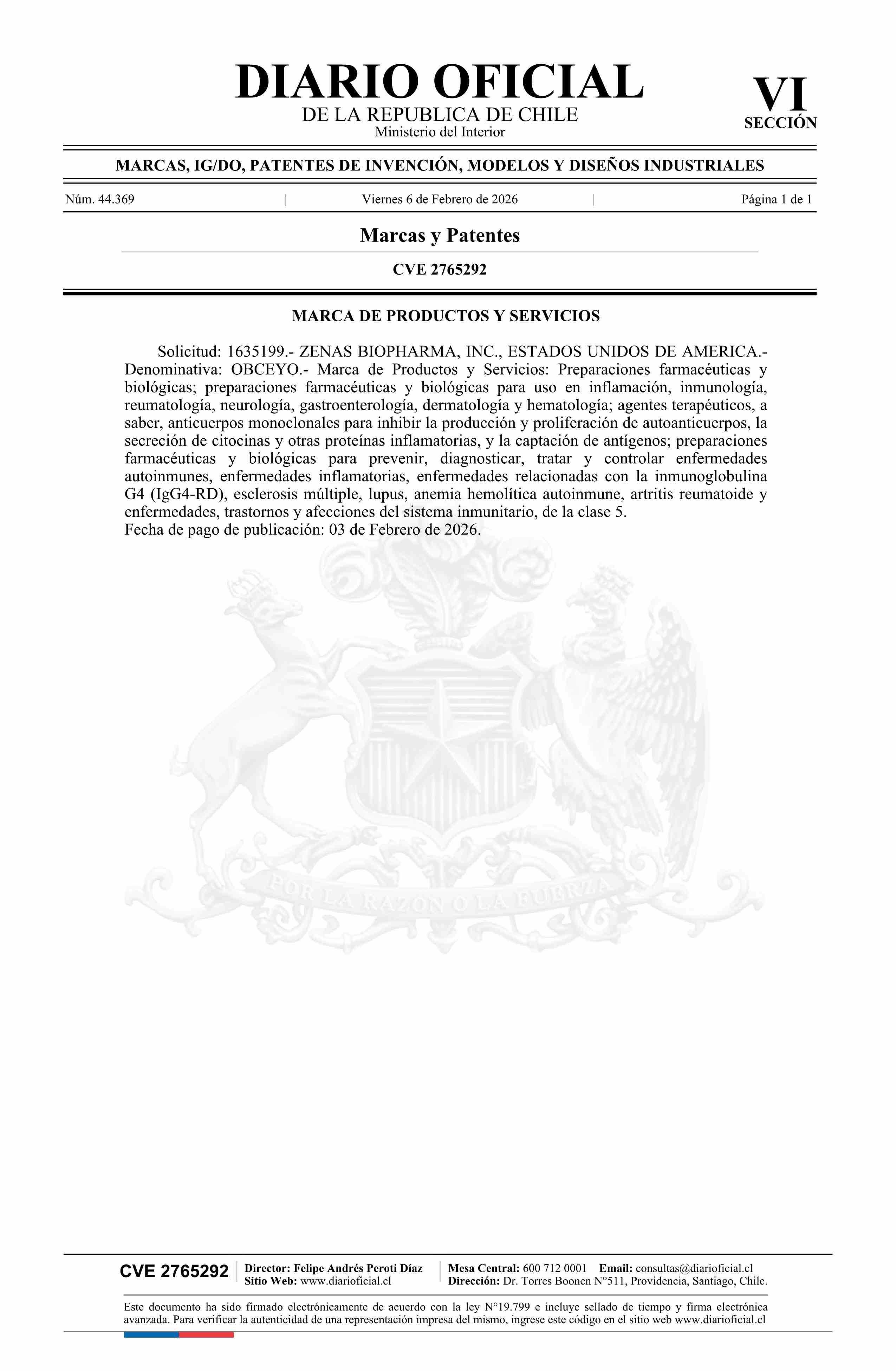 Diario Oficial Edición Electrónica (Diario Oficial de Chile - 6 Marcas Y Patentes)