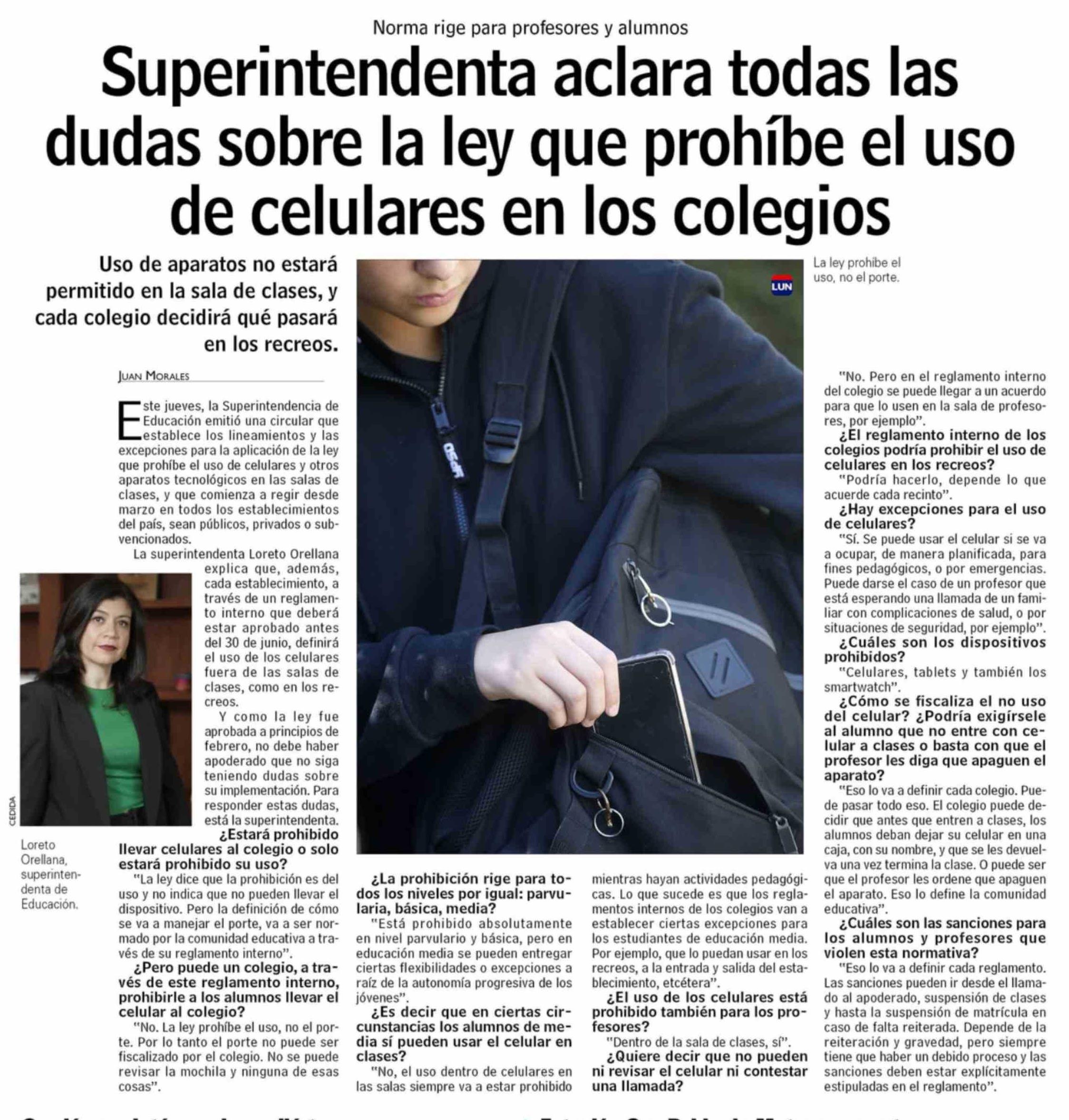 Superintendenta aclara todas las dudas sobre la ley que prohíbe el uso de celulares en los colegios