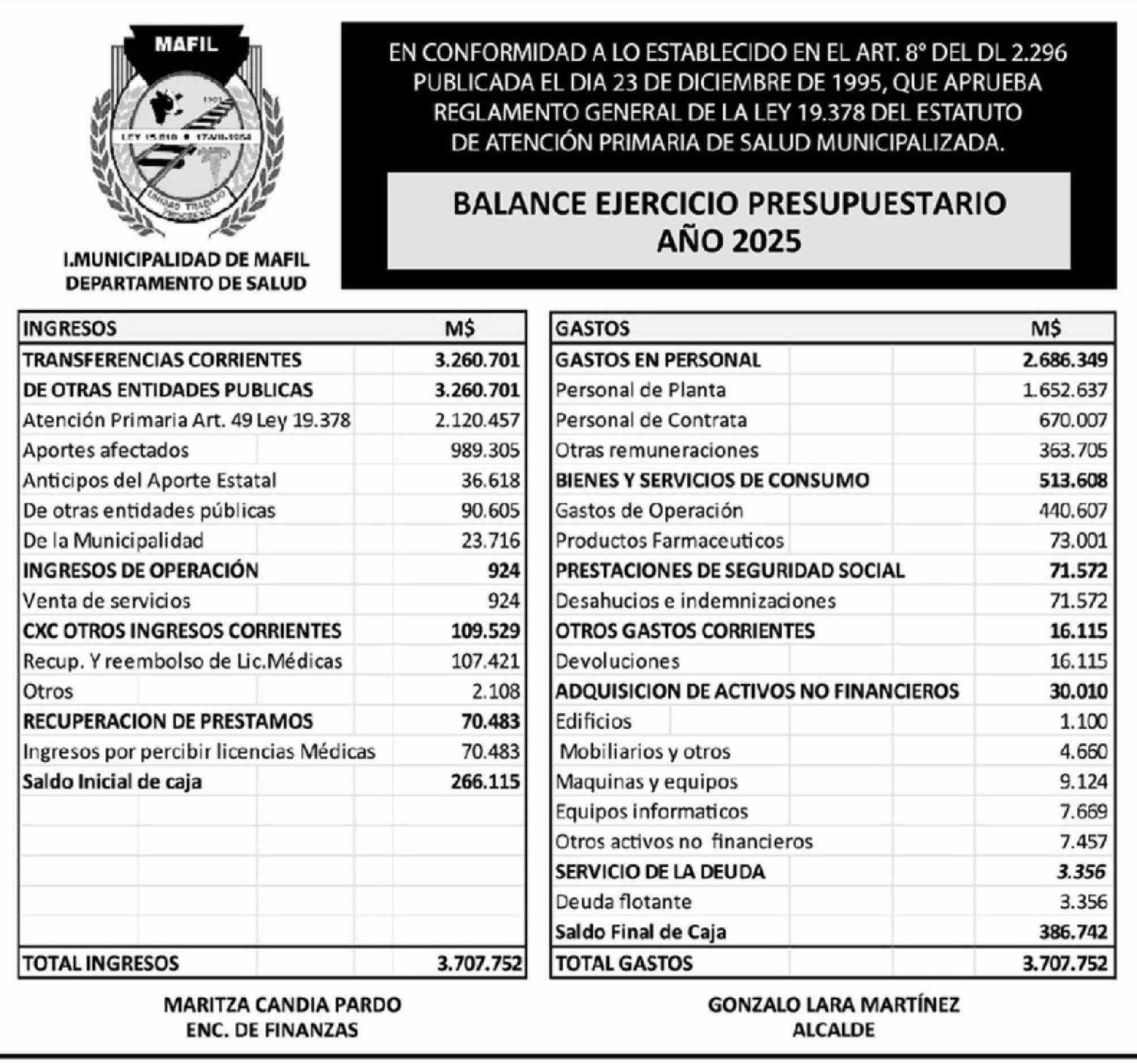 Extractos: I.MUNICIPALIDAD DE MAFIL DEPARTAMENTO DE SALUD