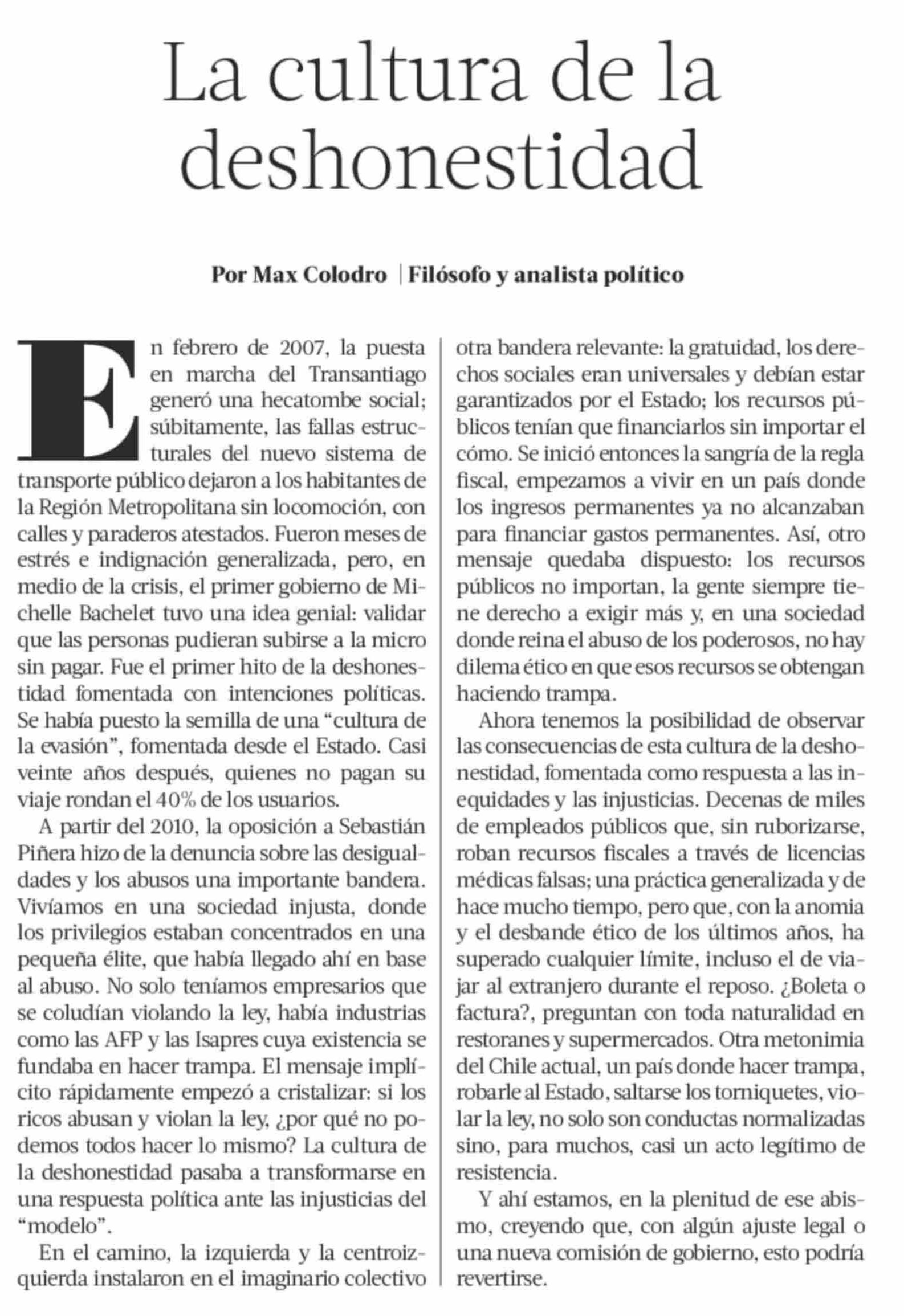 COLUMNAS DE OPINIÓN: La cultura de la deshonestidad