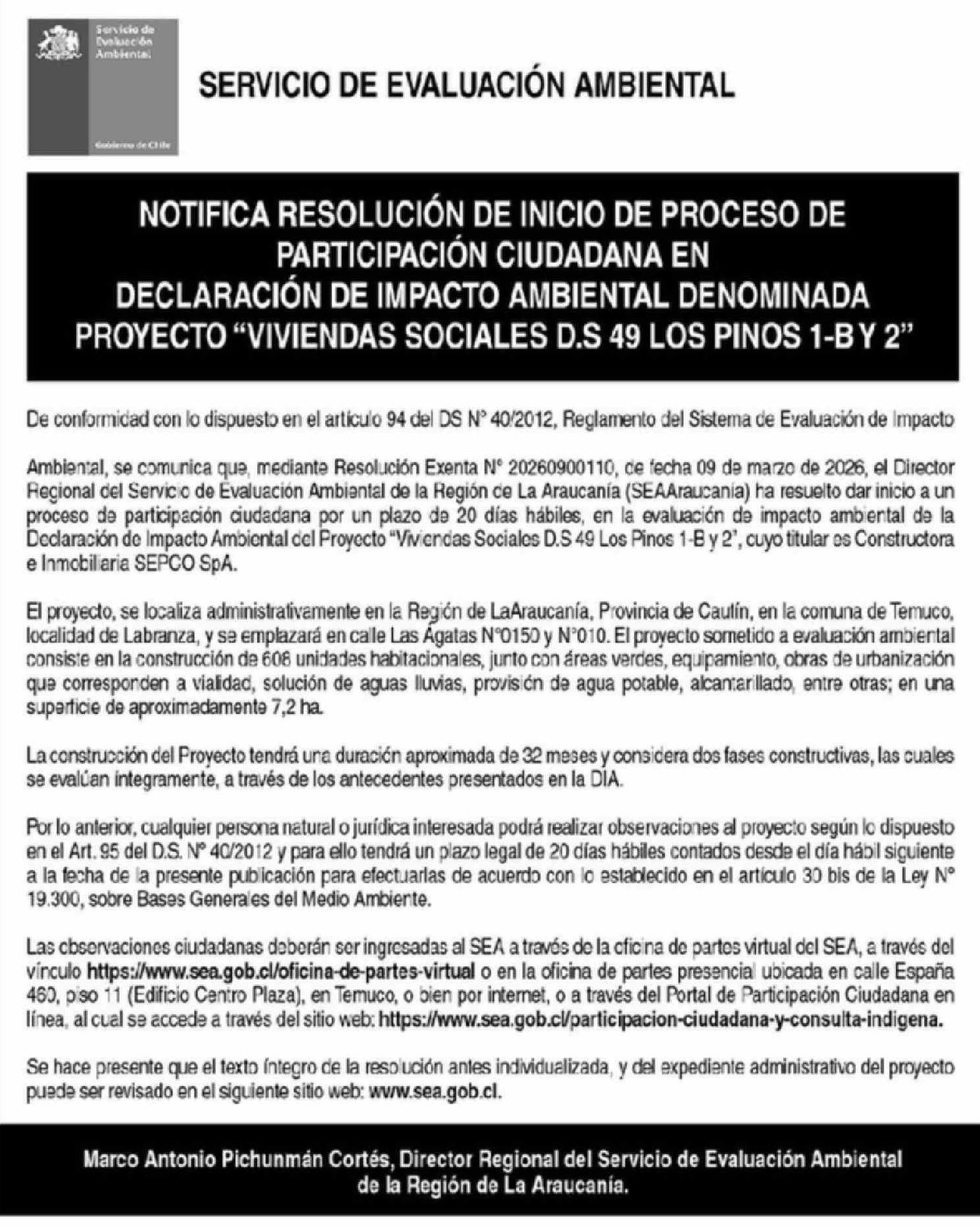 Extractos: SERVICIO DE EVALUACIÓN AMBIENTAL