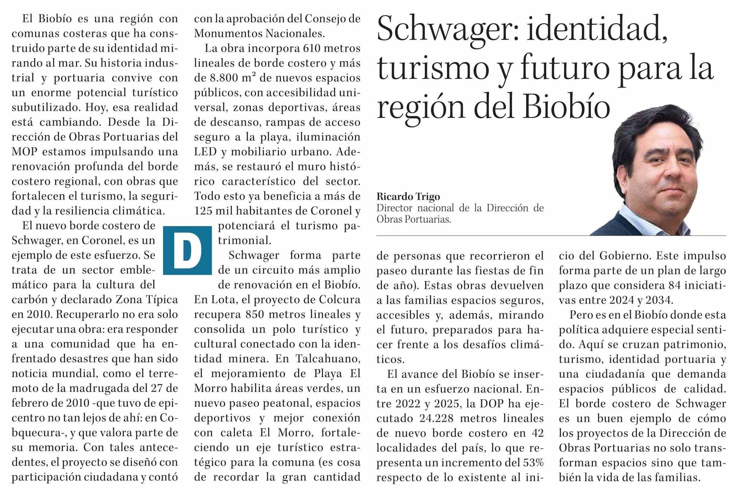 Columnas de Opinión: Schwager: identidad, turismo y futuro para la región del Biobío