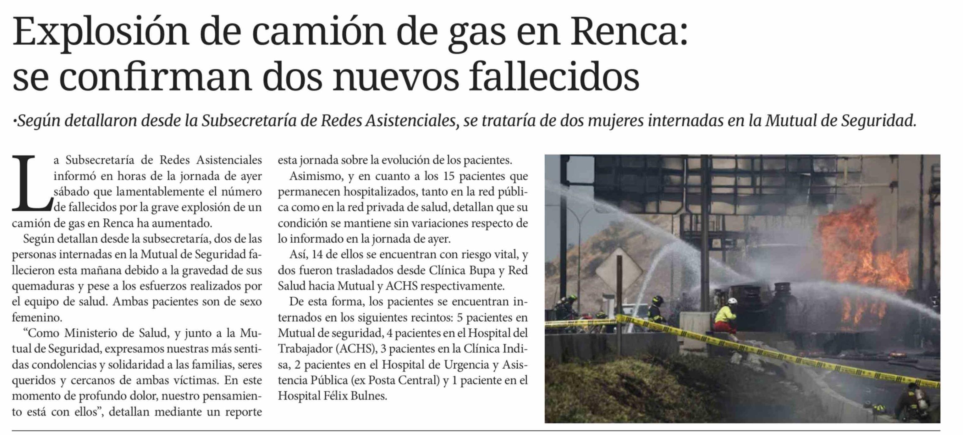 Título: Explosión de camión de gas en Renca: se confirman dos nuevos fallecidos