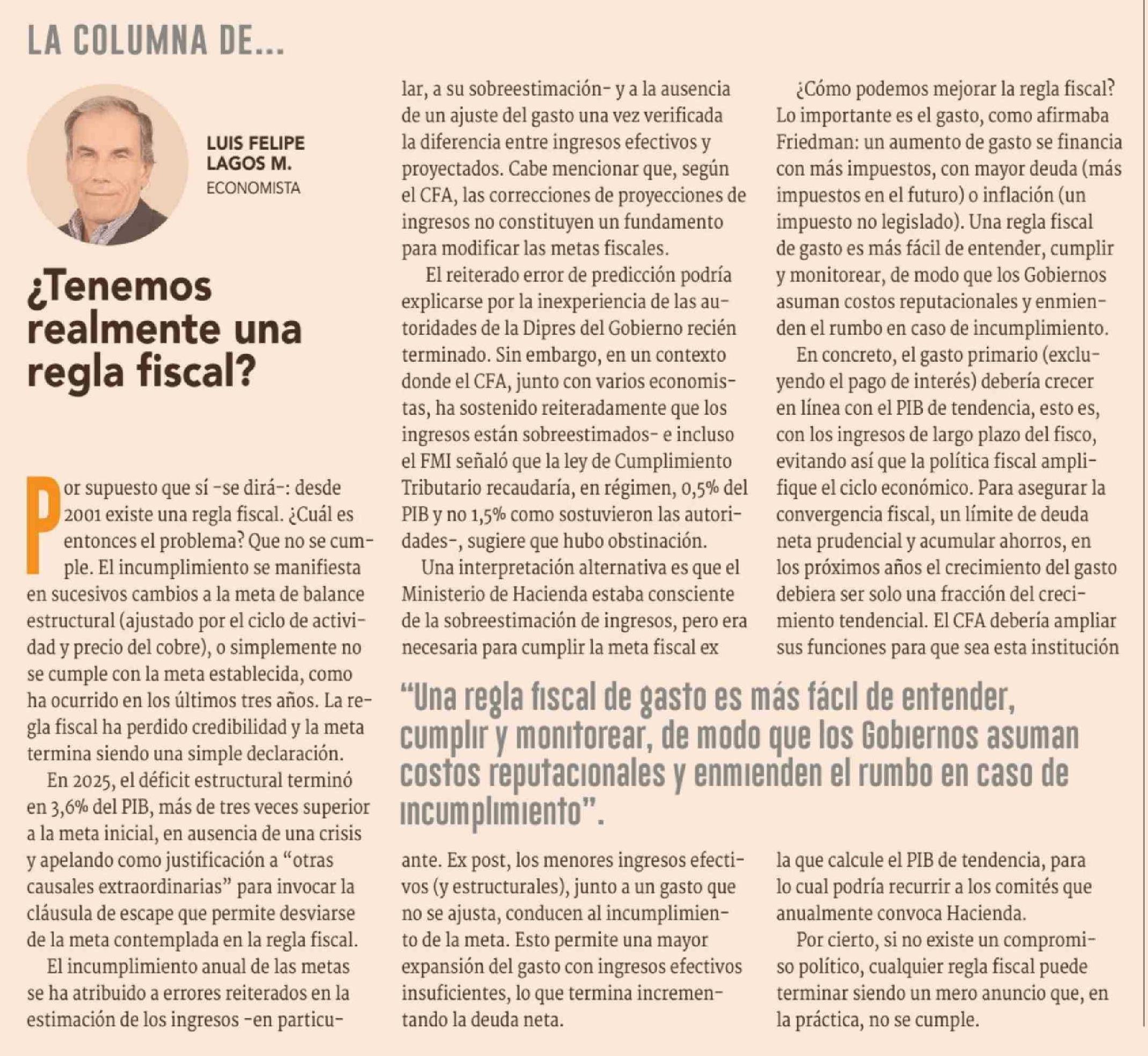 Columnas de Opinión: ¿Tenemos realmente una regla fiscal?