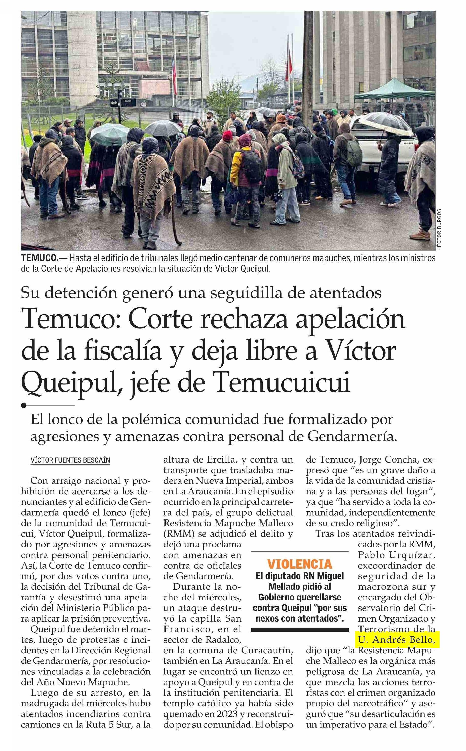 Temuco: Corte rechaza apelación de la fiscalía y deja libre a Víctor Queipul, jefe de Temucuicui