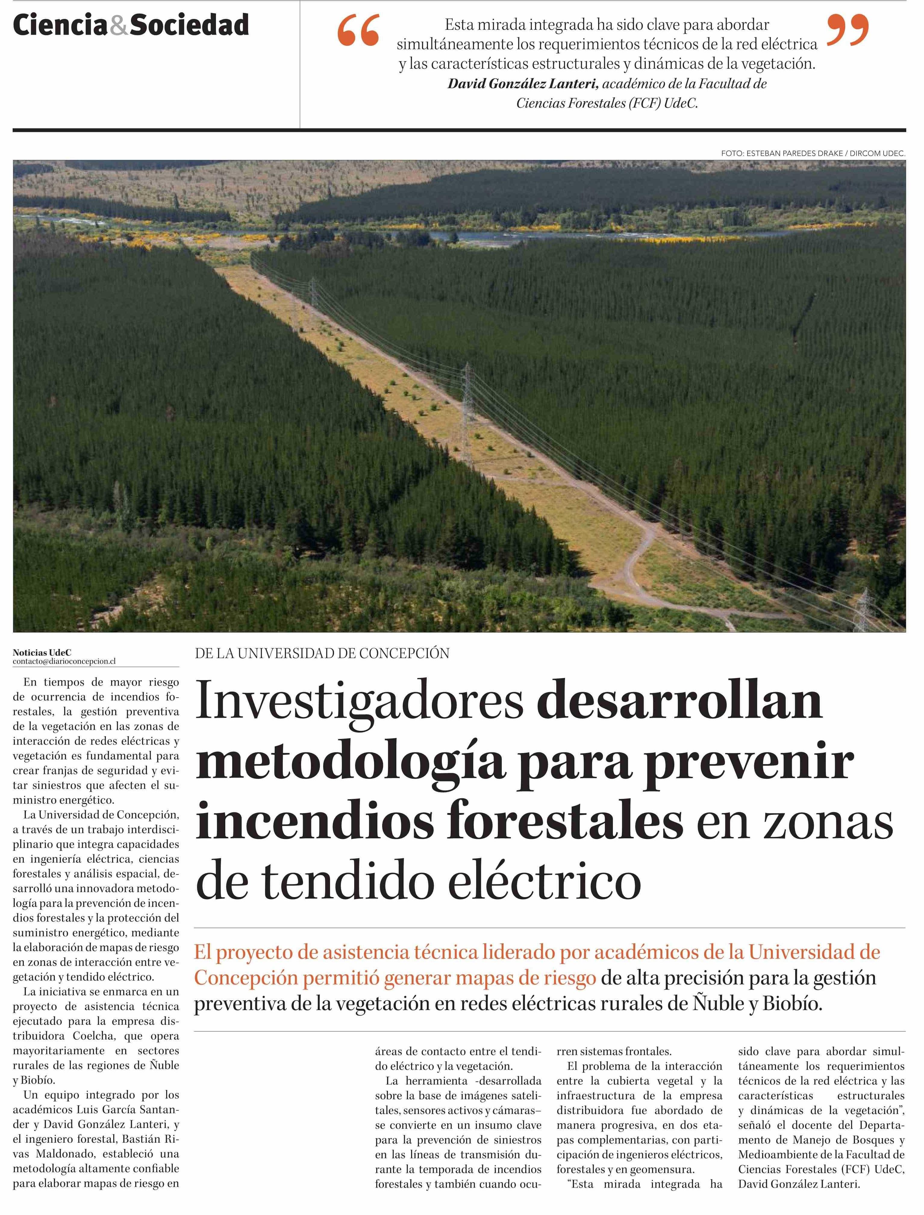 Investigadores desarrollan metodología para prevenir incendios forestales en zonas de tendido eléctrico