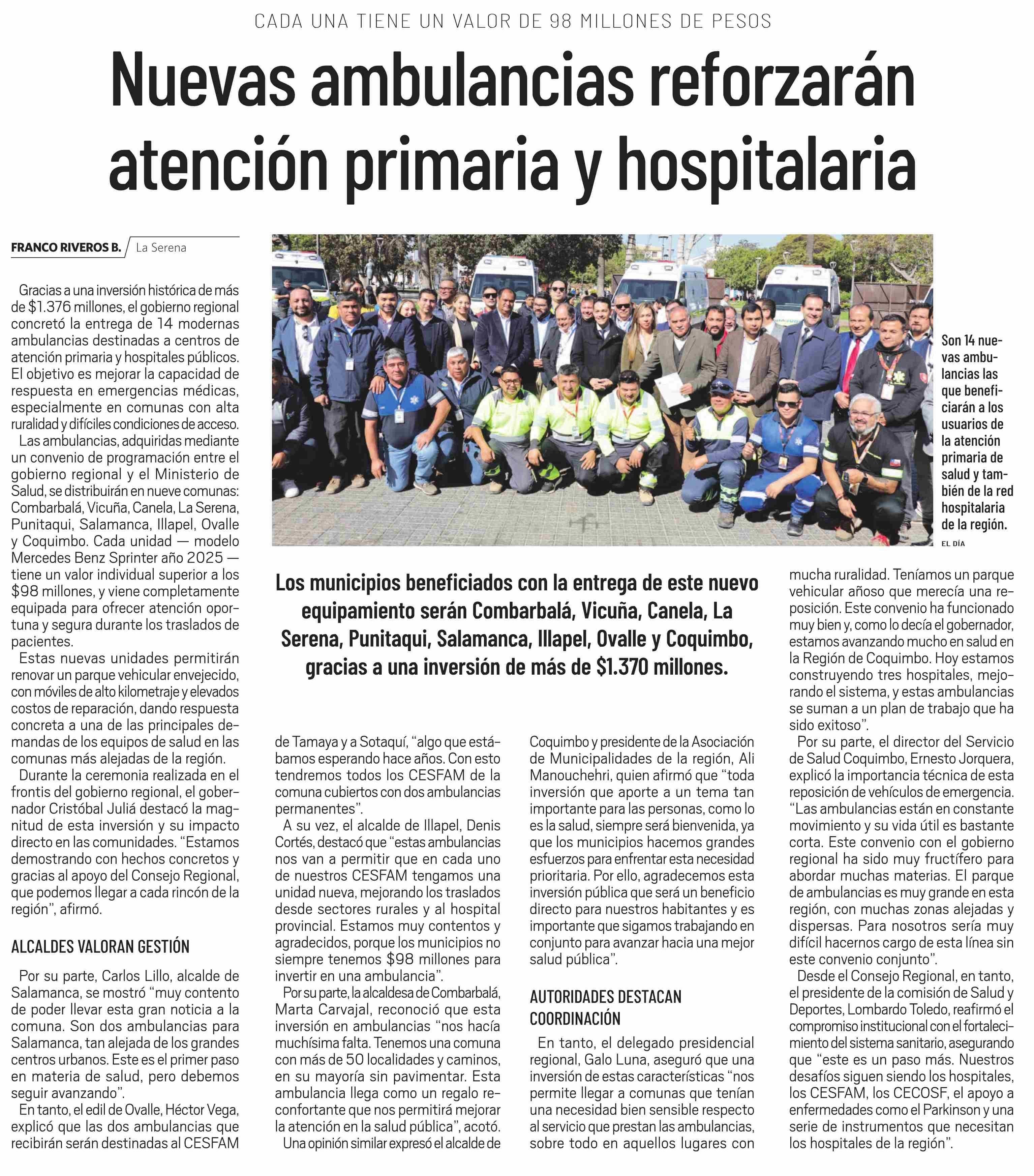 Nuevas ambulancias reforzarán atención primaria y hospitalaria