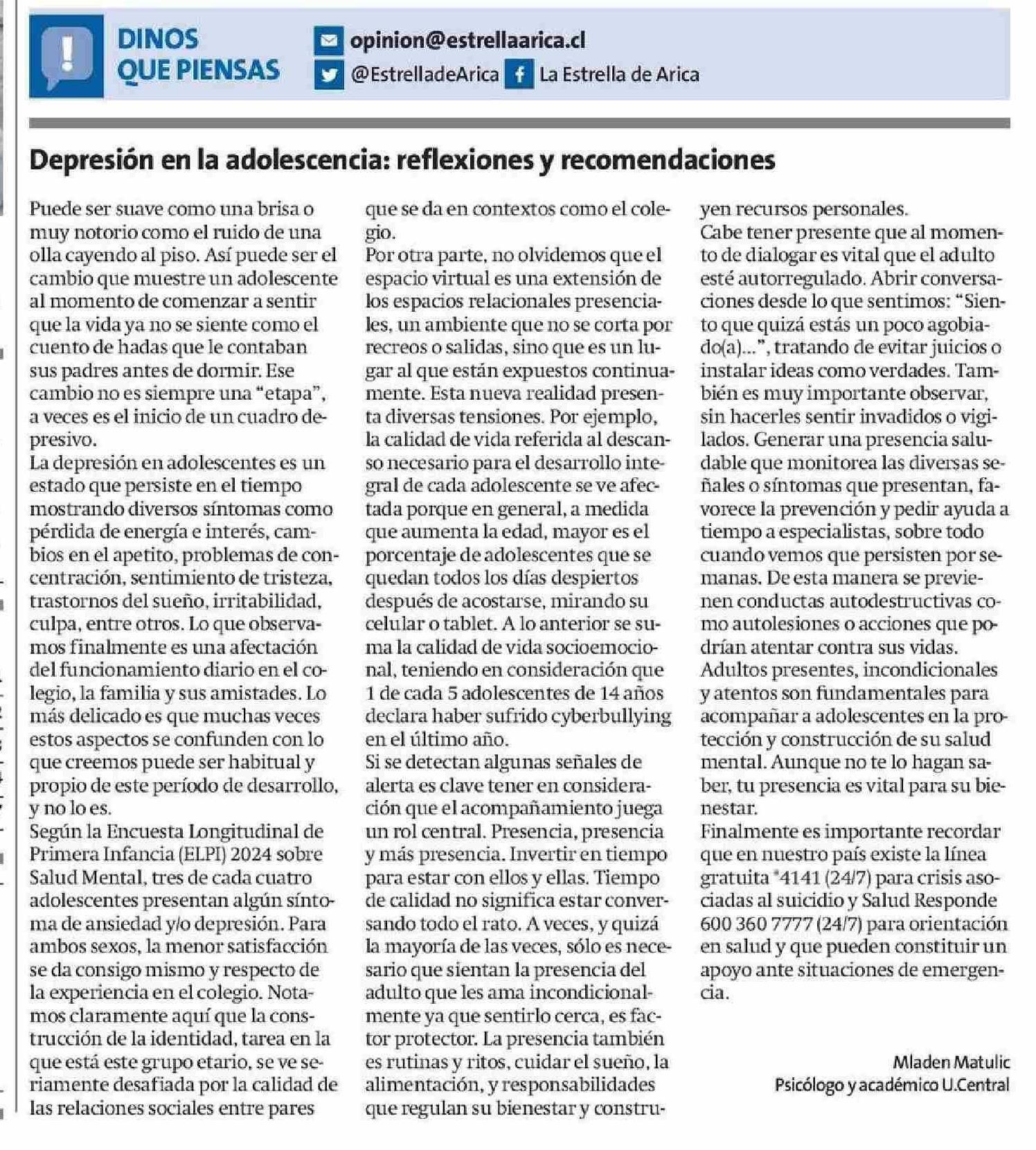 Cartas: Depresión en la adolescencia: reflexiones y recomendaciones