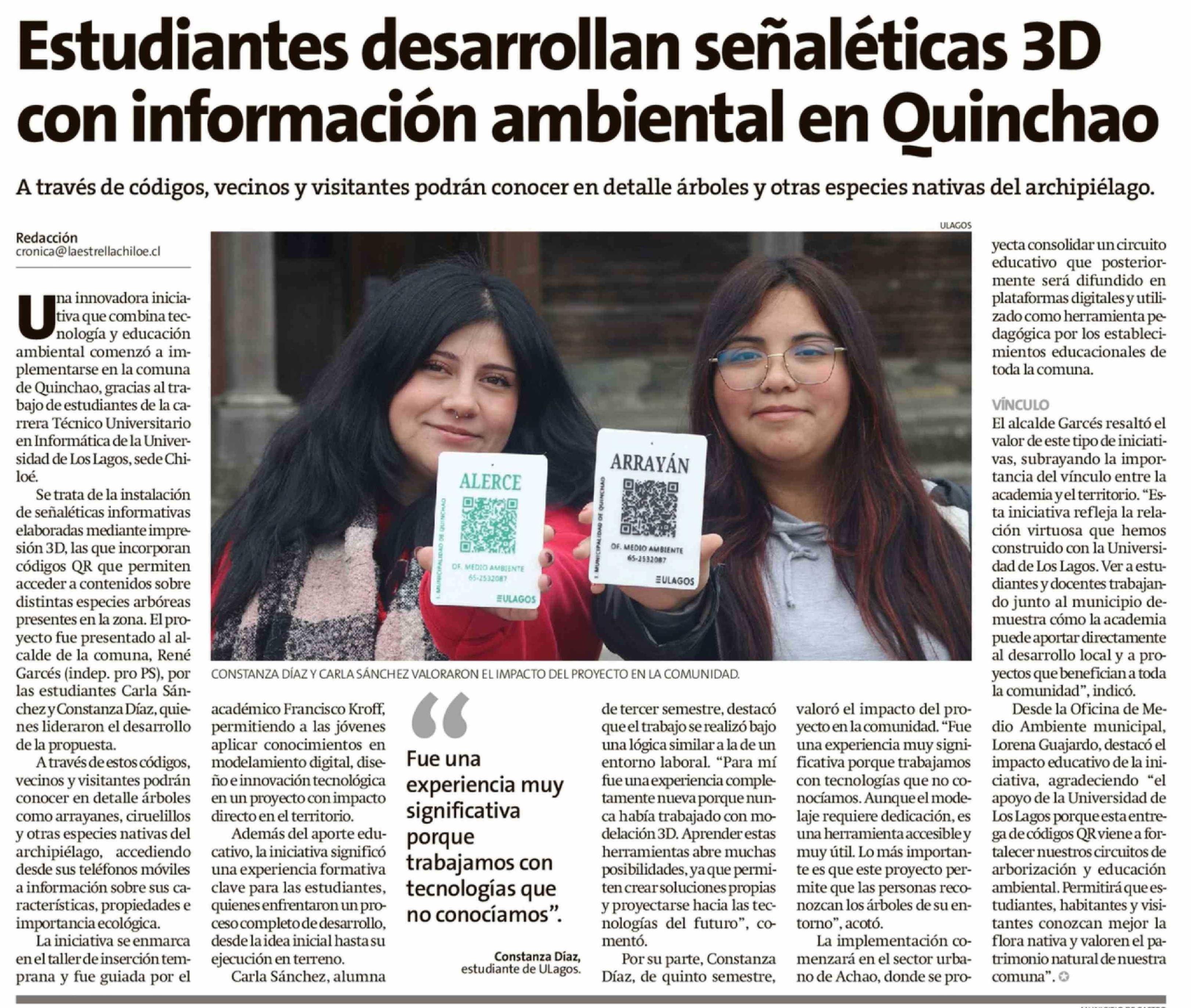 Estudiantes desarrollan señaléticas 3D con información ambiental en Quinchao