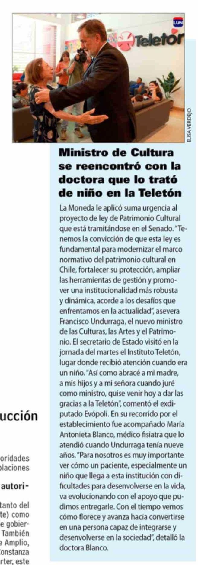 Ministro de Cultura se reencontró con la doctora que lo trató de niño en la Teletón