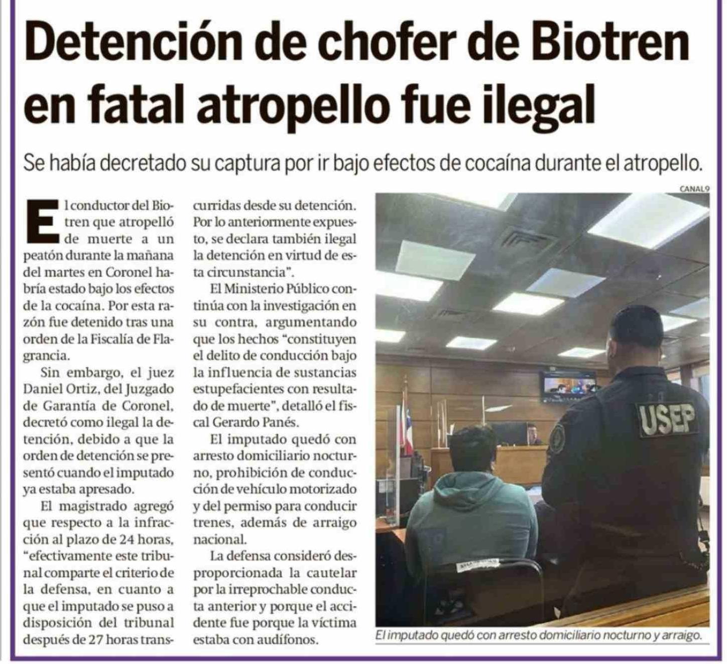 Detención de chofer de Biotren en fatal atropello fue ilegal