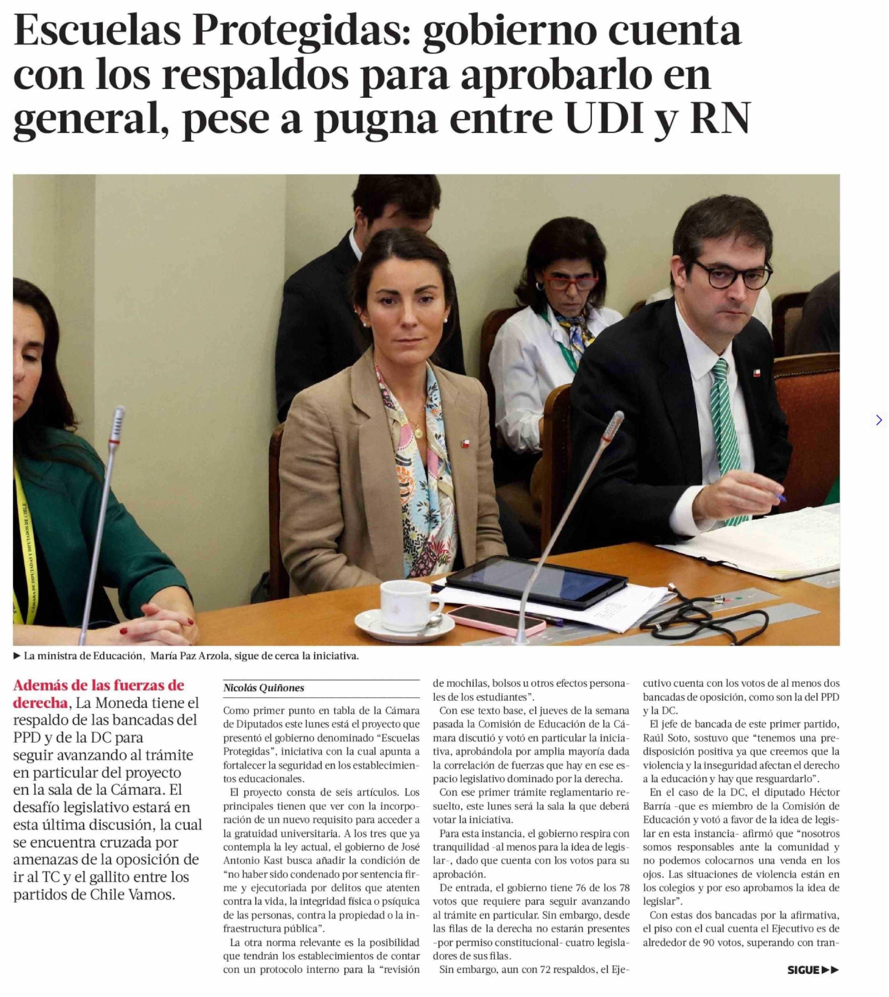 Escuelas Protegidas: gobierno cuenta con los respaldos para aprobarlo en general, pese a pugna entre UDI y RN