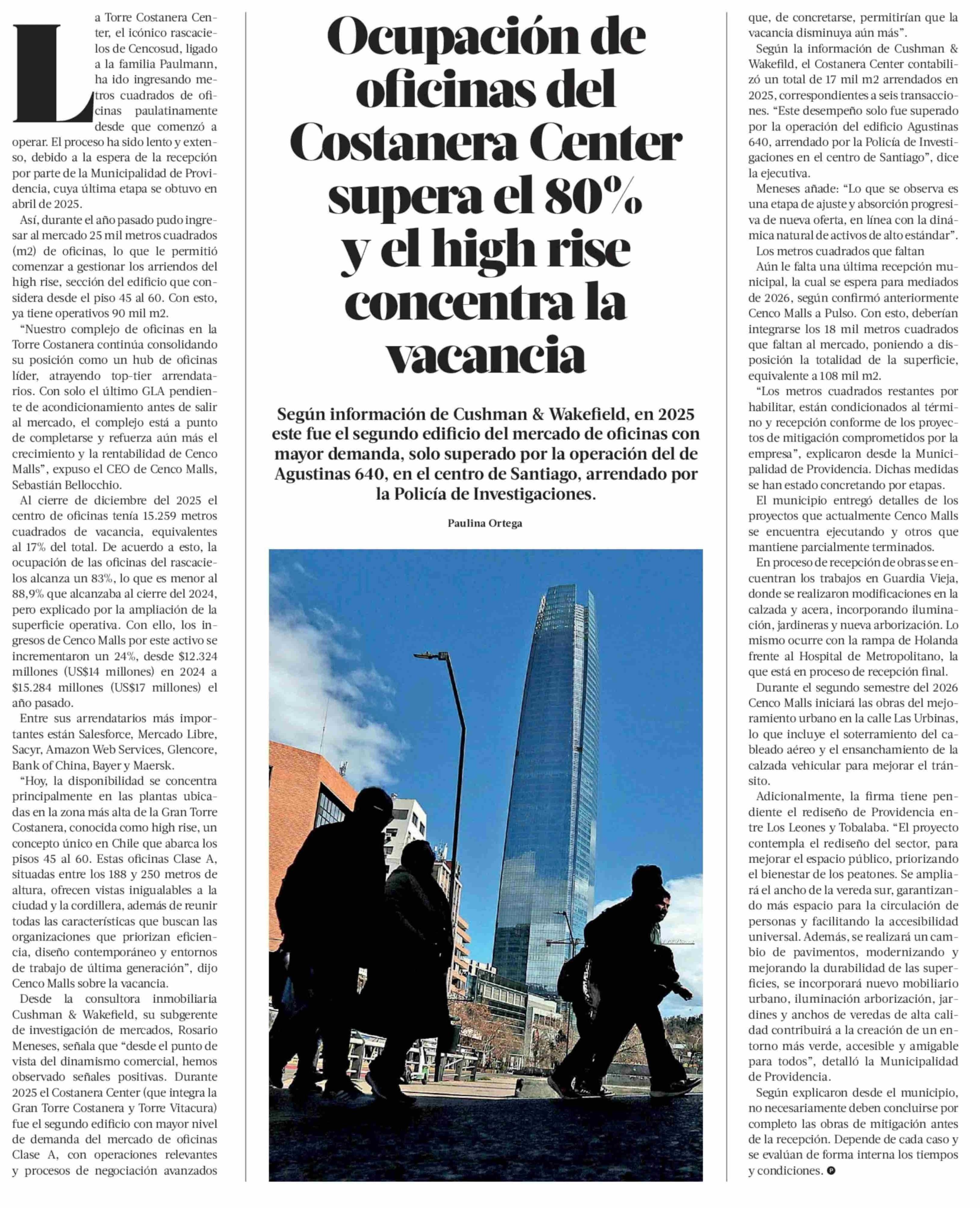 Ocupación de oficinas del Costanera Center supera el 80% y el high rise concentra la vacancia