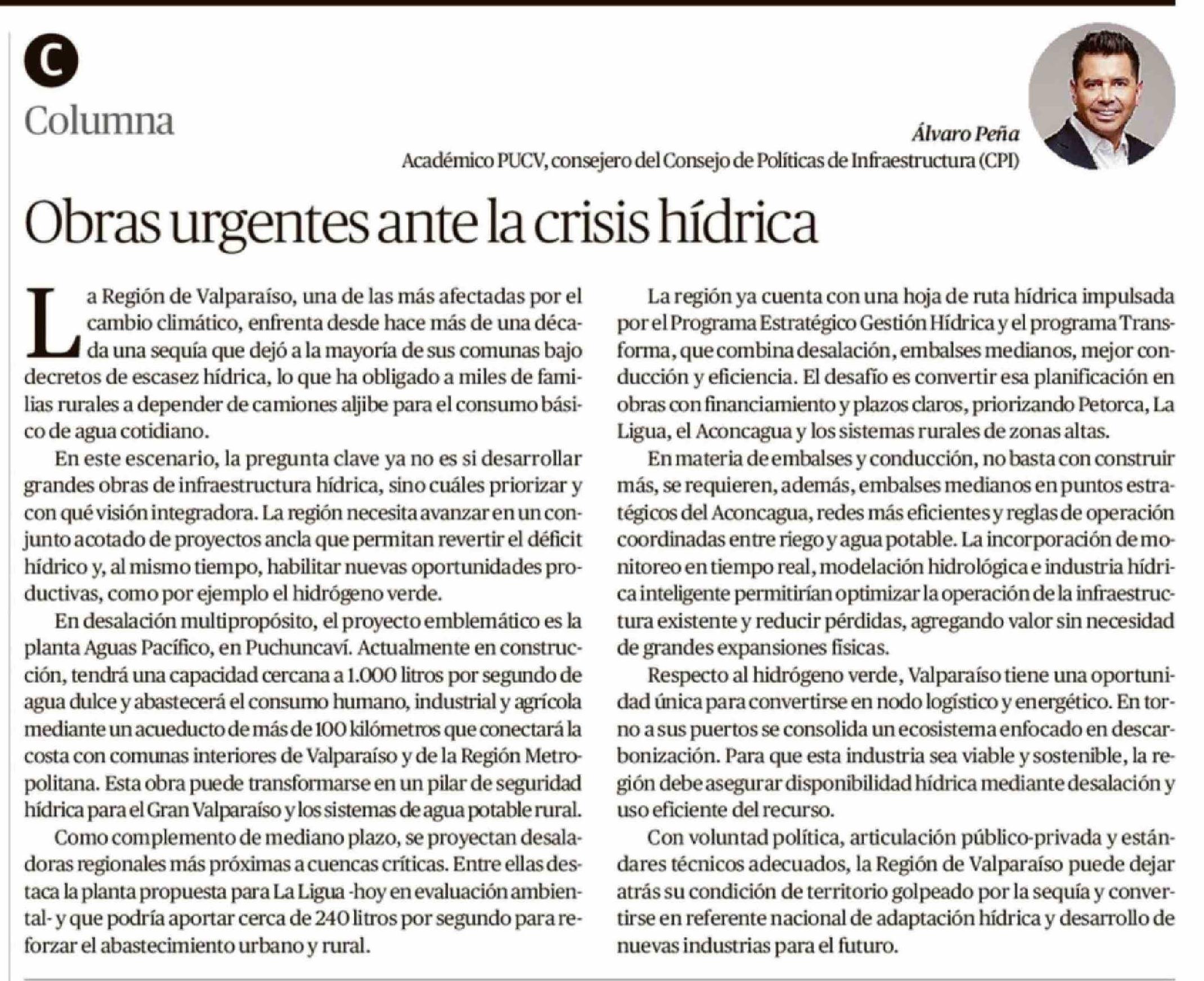 Columnas de Opinión: Obras urgentes ante la crisis hídrica