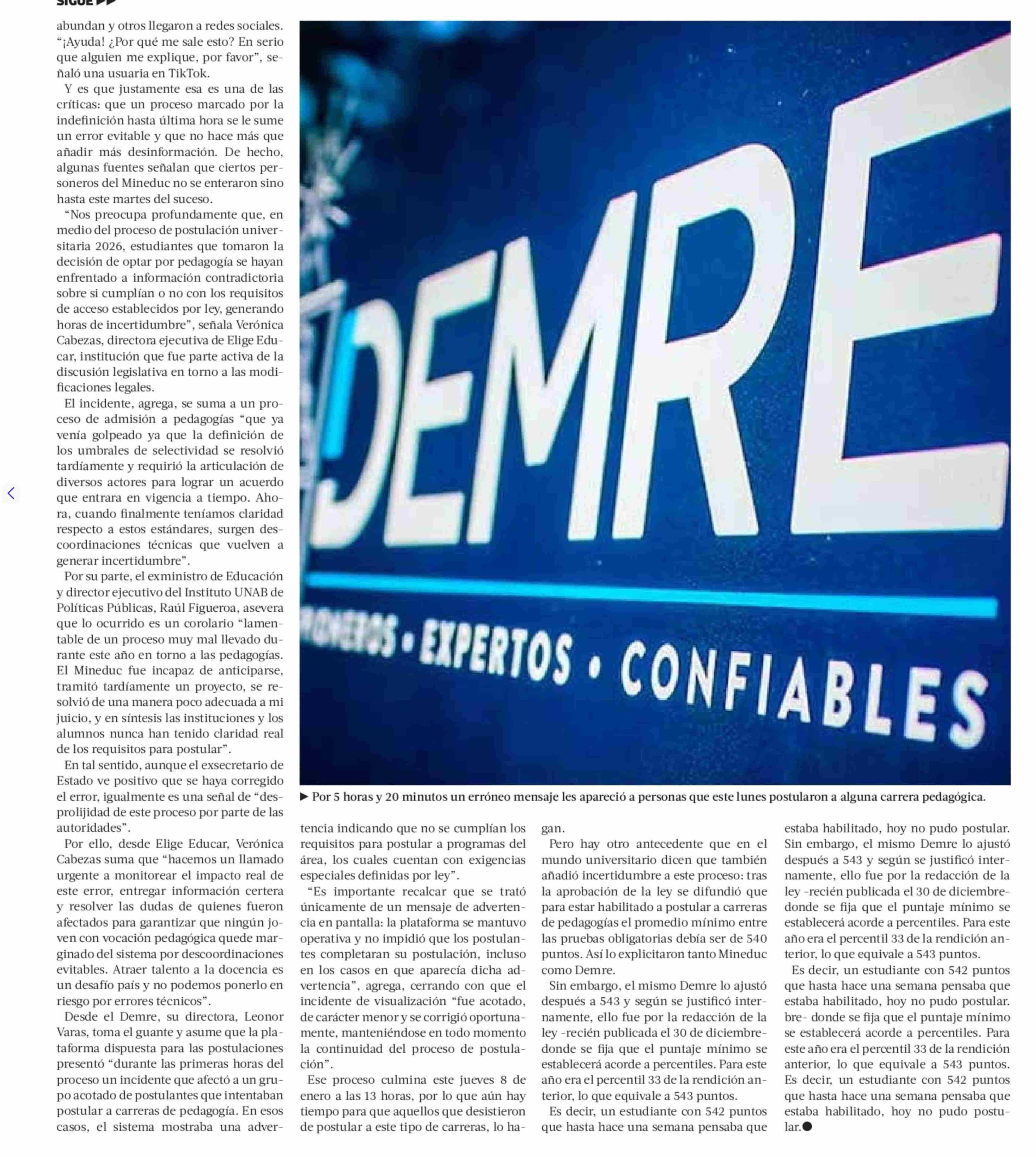 Mensaje erróneo del Demre en postulación a pedagogías marca inicio de Admisión 2026