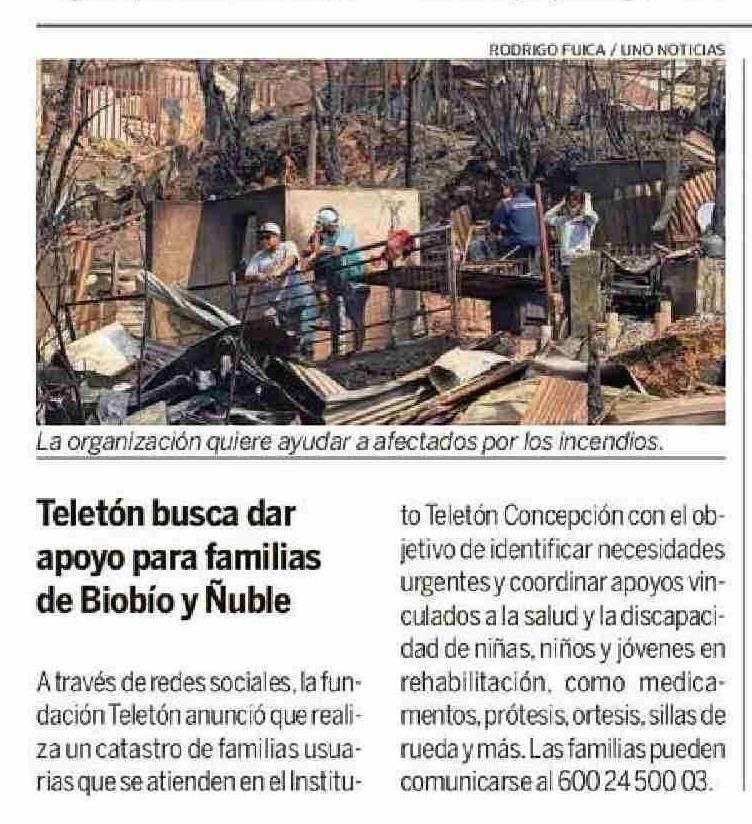 Teletón busca dar apoyo para familias de Biobío y Ñuble