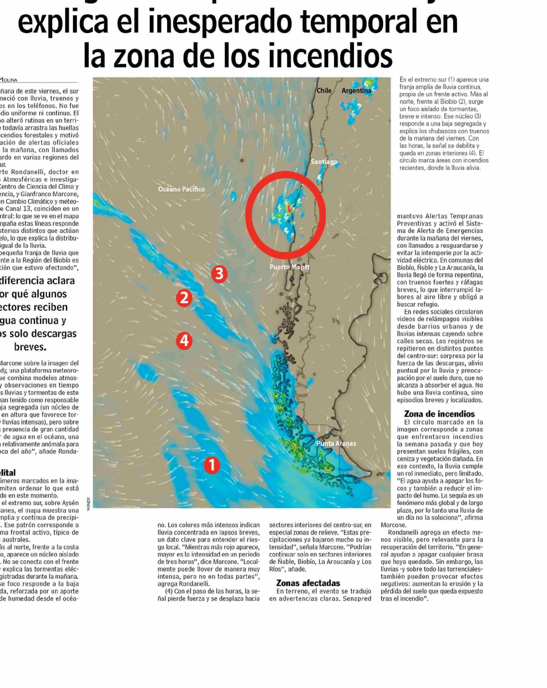Imagen de la plataforma Windy explica el inesperado temporal en la zona de los incendios