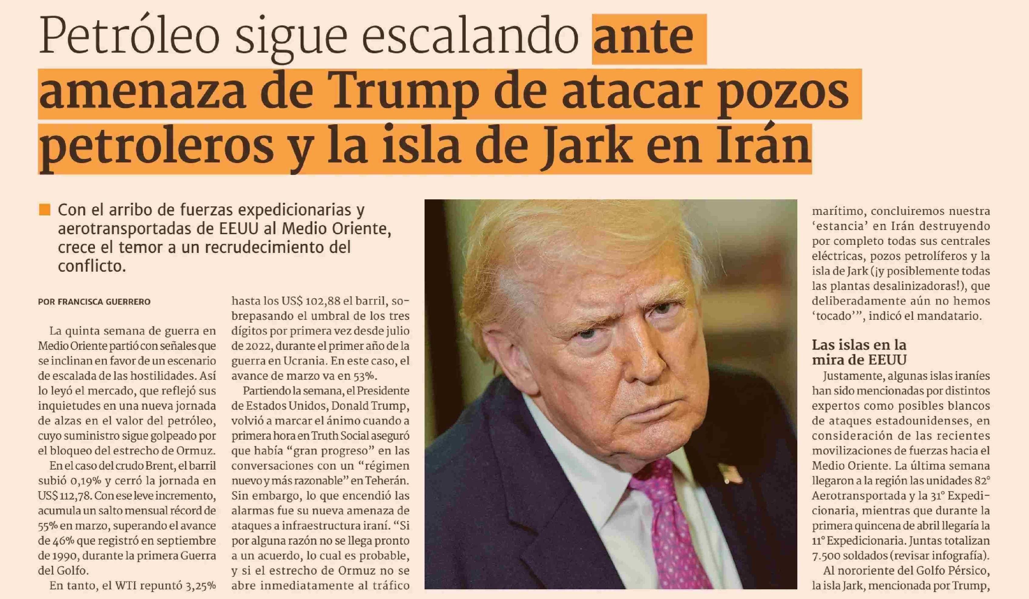 Petróleo sigue escalando ante amenaza de Trump de atacar pozos petroleros y la isla de Jark en Irán
