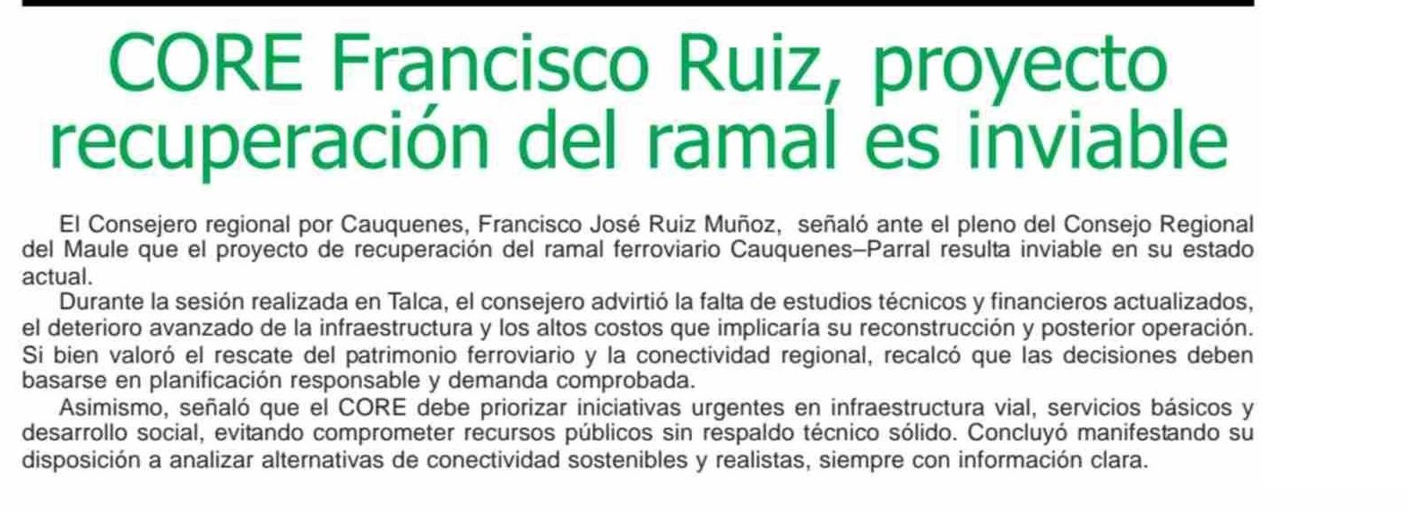 CORE Francisco Ruiz, proyecto recuperación del ramal es inviable