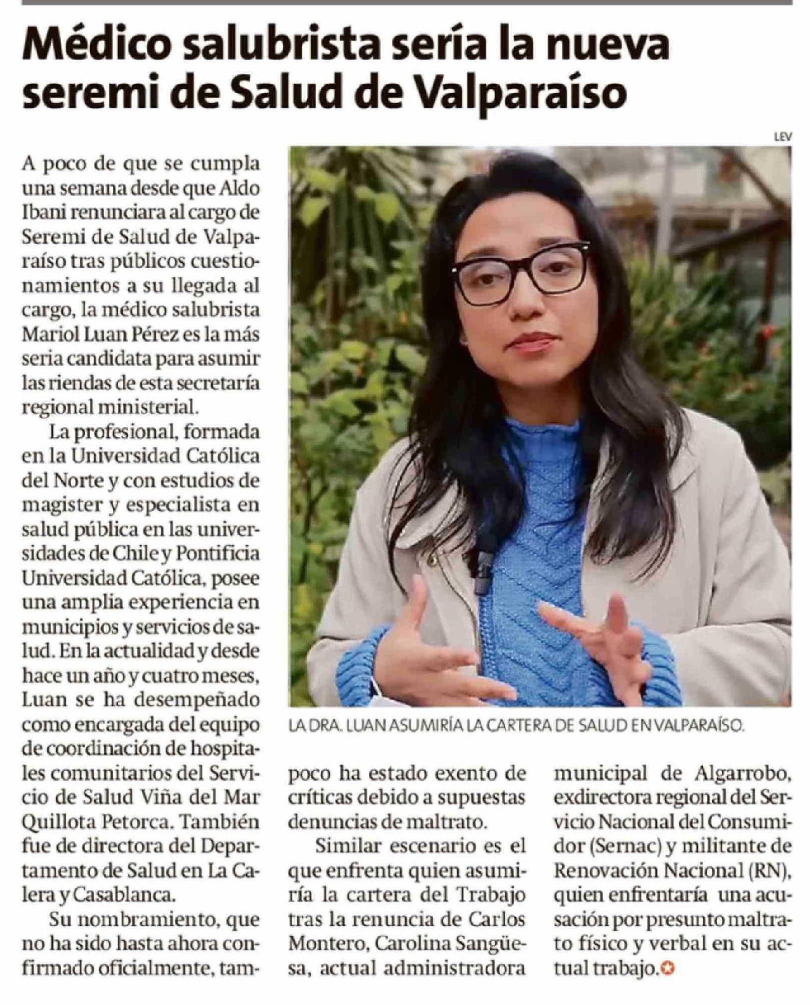 Médico salubrista sería la nueva seremi de Salud de Valparaíso